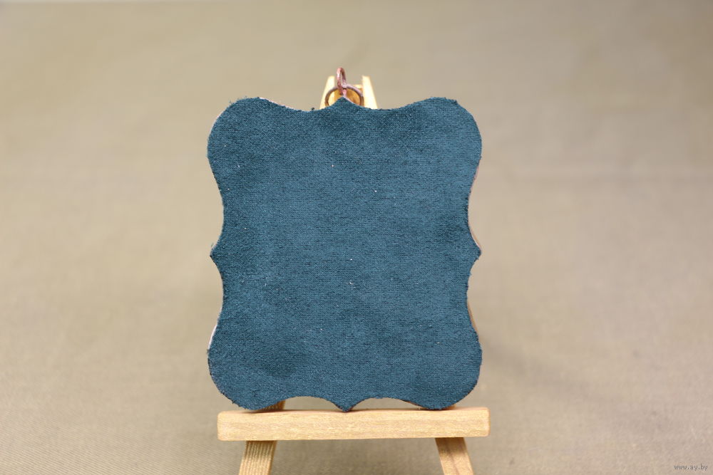 Подвесная икона в фигурном окладе на бархатной подложке.