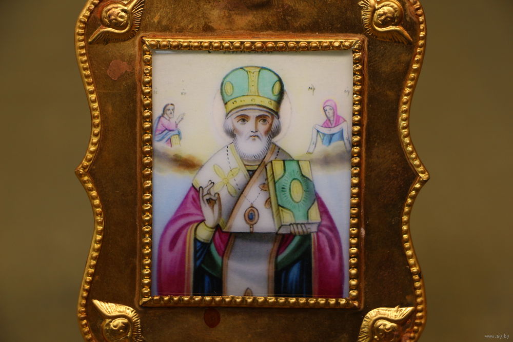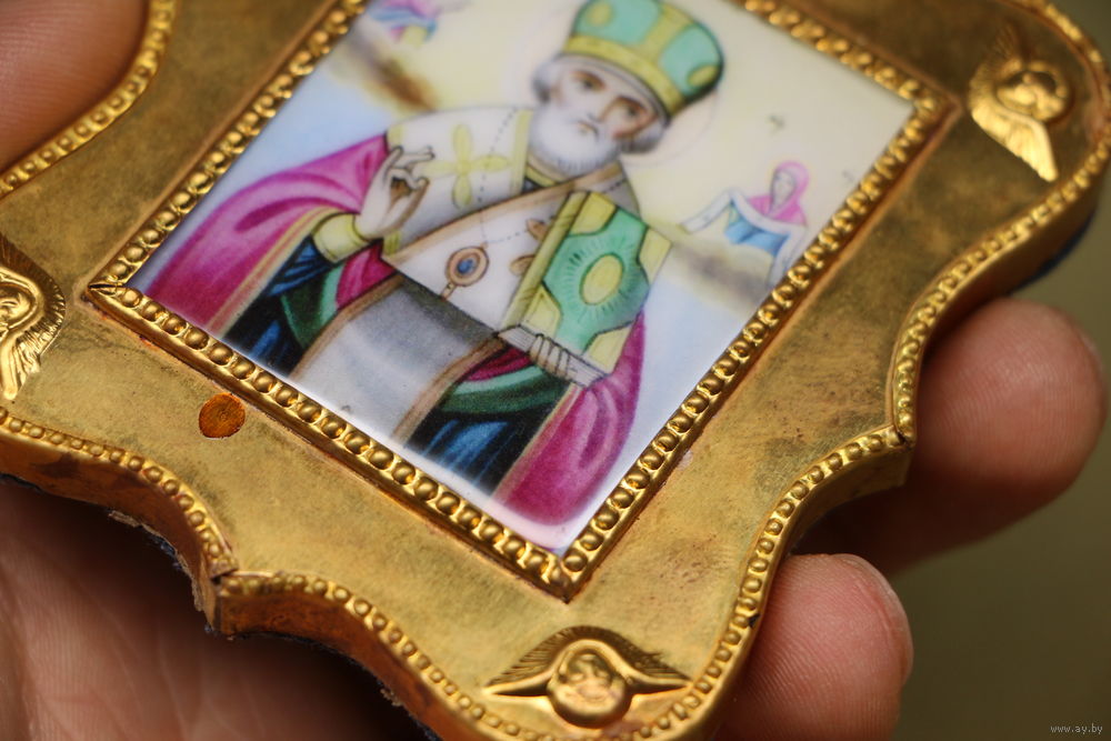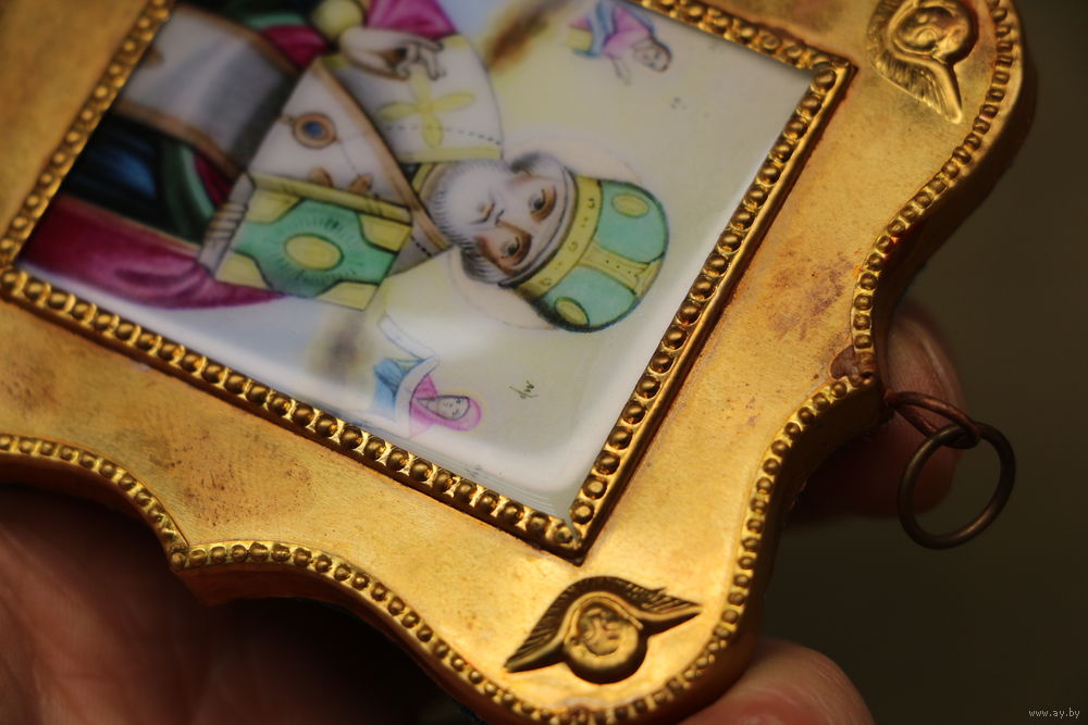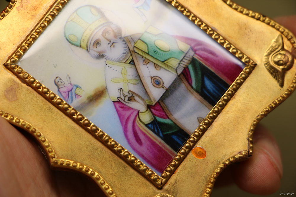 Латунный или бронзовый оклад, позолота.