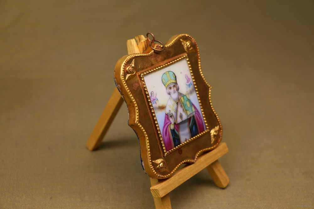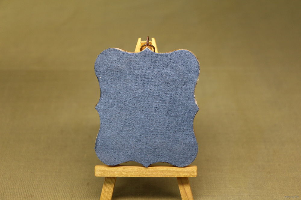 Подвесная икона в фигурном окладе на бархатной подложке.