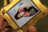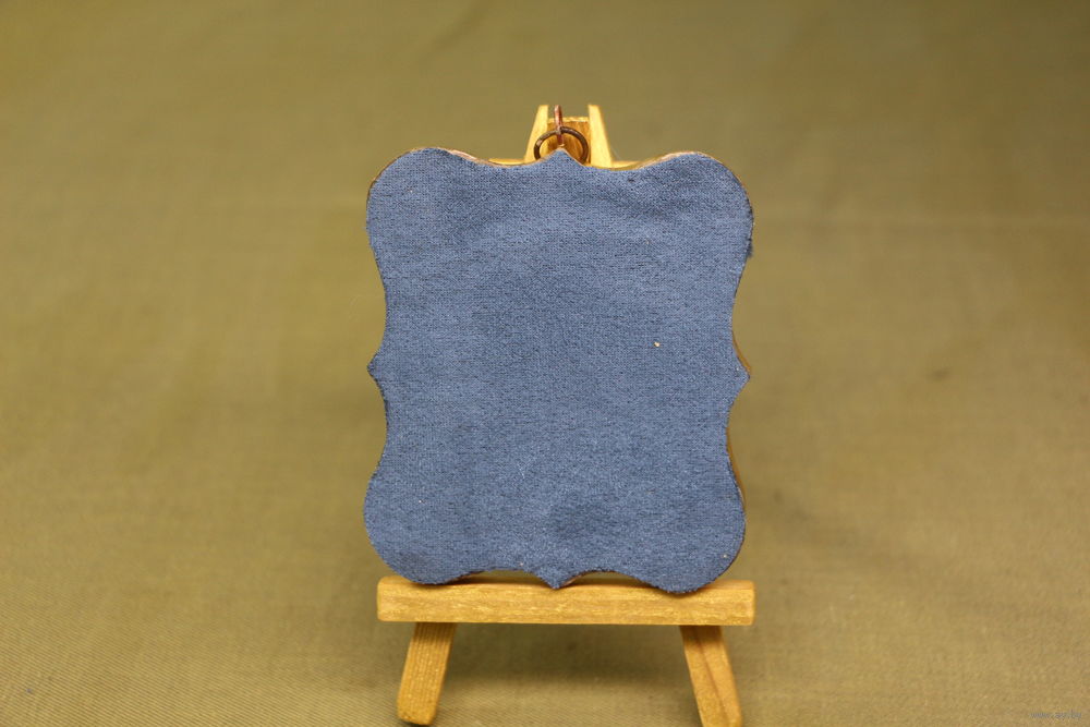 Подвесная икона в фигурном окладе на бархатной подложке.