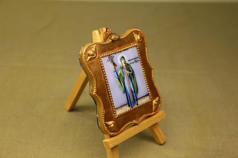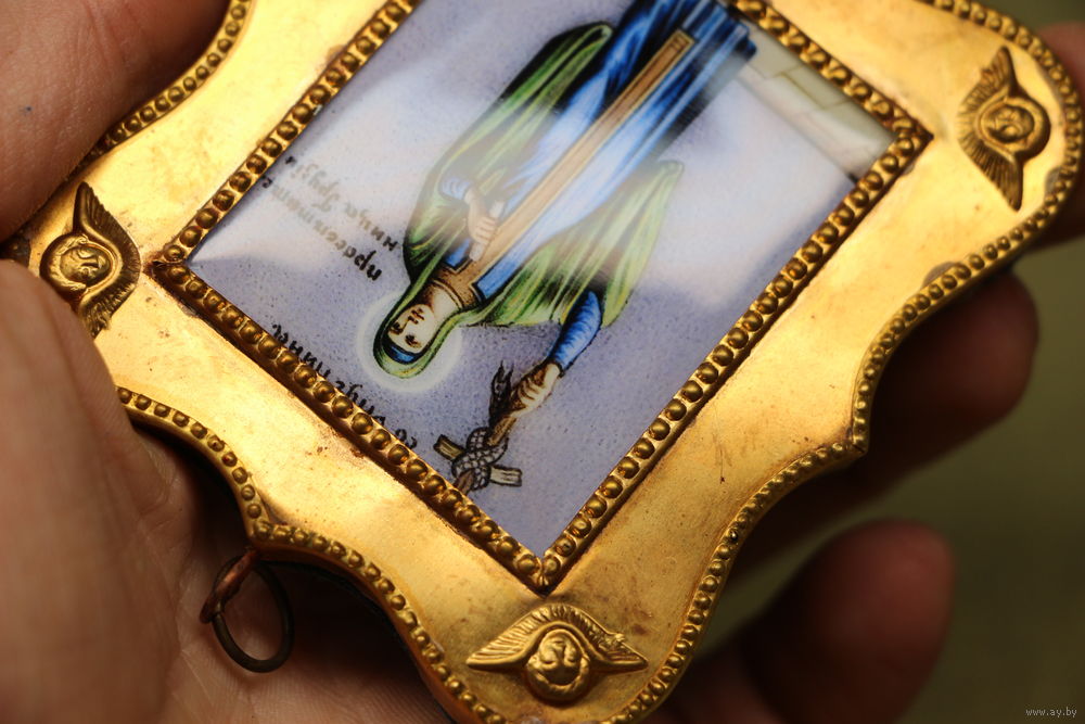 Подвесная икона в фигурном окладе на бархатной подложке.