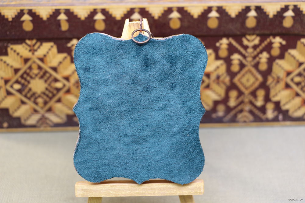 Подвесная икона в фигурном окладе на бархатной подложке.