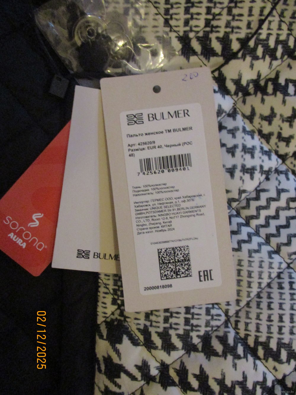 Пальто демисезонное двухстороннее от немецкого бренда BULMER – это стильное и практичное решение . Модель выполнена из плотного, водоотталкивающего материала, обеспечивающего комфорт. Одна сторона монохромном принте в клетку, а вторая сторона – однотонная черная, что позволяет создавать разнообразные образы. Застежка на кнопки, отложной воротник, который меняется на английский, и накладные карманы с контрастными листочками Утеплитель высококачественный био-пух — это идеальный выбор для тех, кто ценит комфорт и практичность: его легкость делает одежду невесомой, а дышащие свойства обеспечивают отличную вентиляцию. Он прекрасно сохраняет тепло и не комкуется, что гарантирует долговечность изделий и простоту в уходе. Комфорт и премиальное качество – для ценящих стиль женщин. Рекомендации по уходу: щадящая машинная или ручная стирка при температуре до 30°С, не отбеливать. Разрешена сушка при низкой температуре. Гладить при температуре не более 110 °С. Химчистка с применением перхлорэтилена (углеводородных растворителей) по обычному режиму. Стирать в застегнутом виде наизнанку.