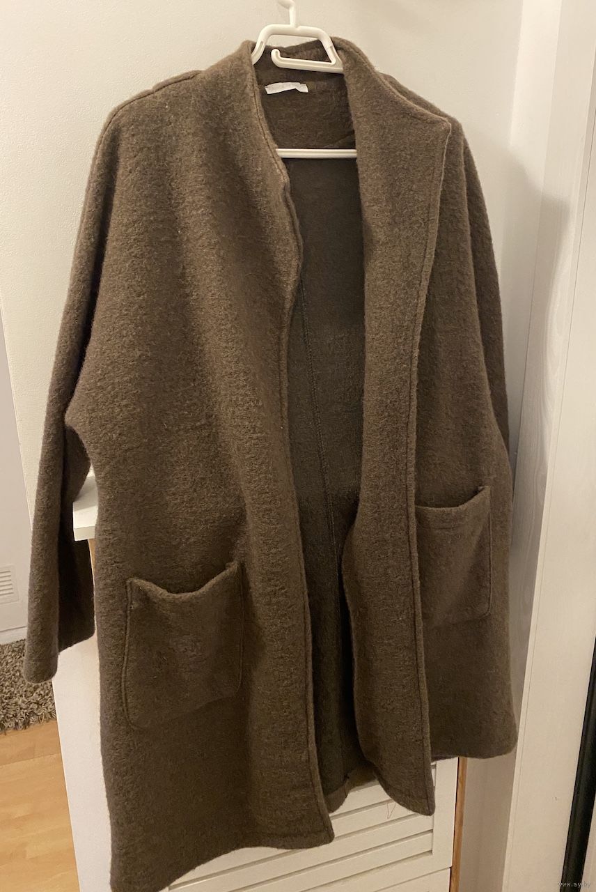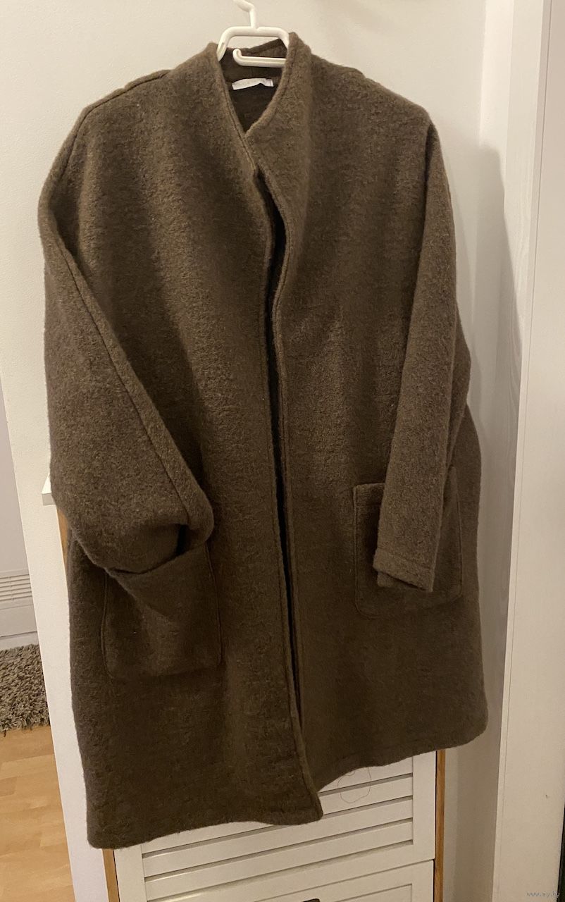 Пальто без подкладки, Италия, в составе шерсть 50%, очень легкое, теплое, объемное. Подойдет на размер M/L (46-48). Замеры: длина по спинке 92 см, по груди и бедрам 61 см, длина рукава реглан 75 см. Дефектов нет. Смотрите также другие мои лоты.
