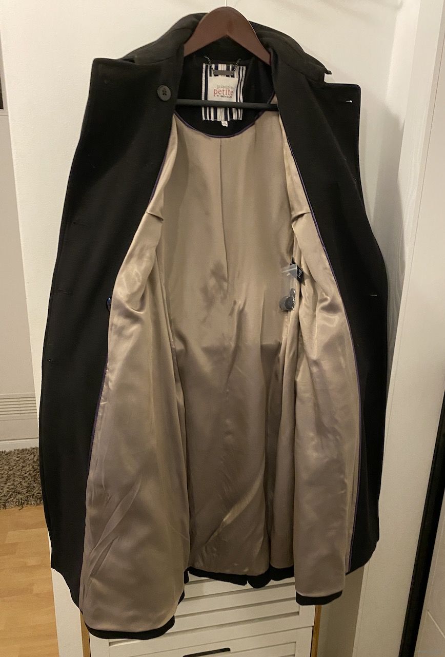 Пальто новое Principles черное, красивое, на размер S/M (44-46), маркировка 12. Замеры: длина по спинке 95 см, по груди 47 см, по талии 45 см, по бедрам 60 см, длина рукава 60 см. Состав вискоза+полиэстер, не мнется, всегда будет опрятный вид. Состояние отличное, дефектов нет.