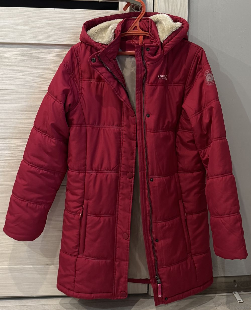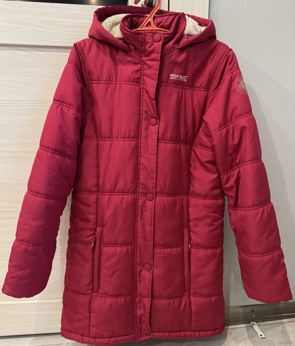 Пальто Regatta, б/у. Рост по ярлыку 164 см. Cинтепон. Капюшон не отстегивается. Яркий малиновый цвет. Стирка 40 градусов.