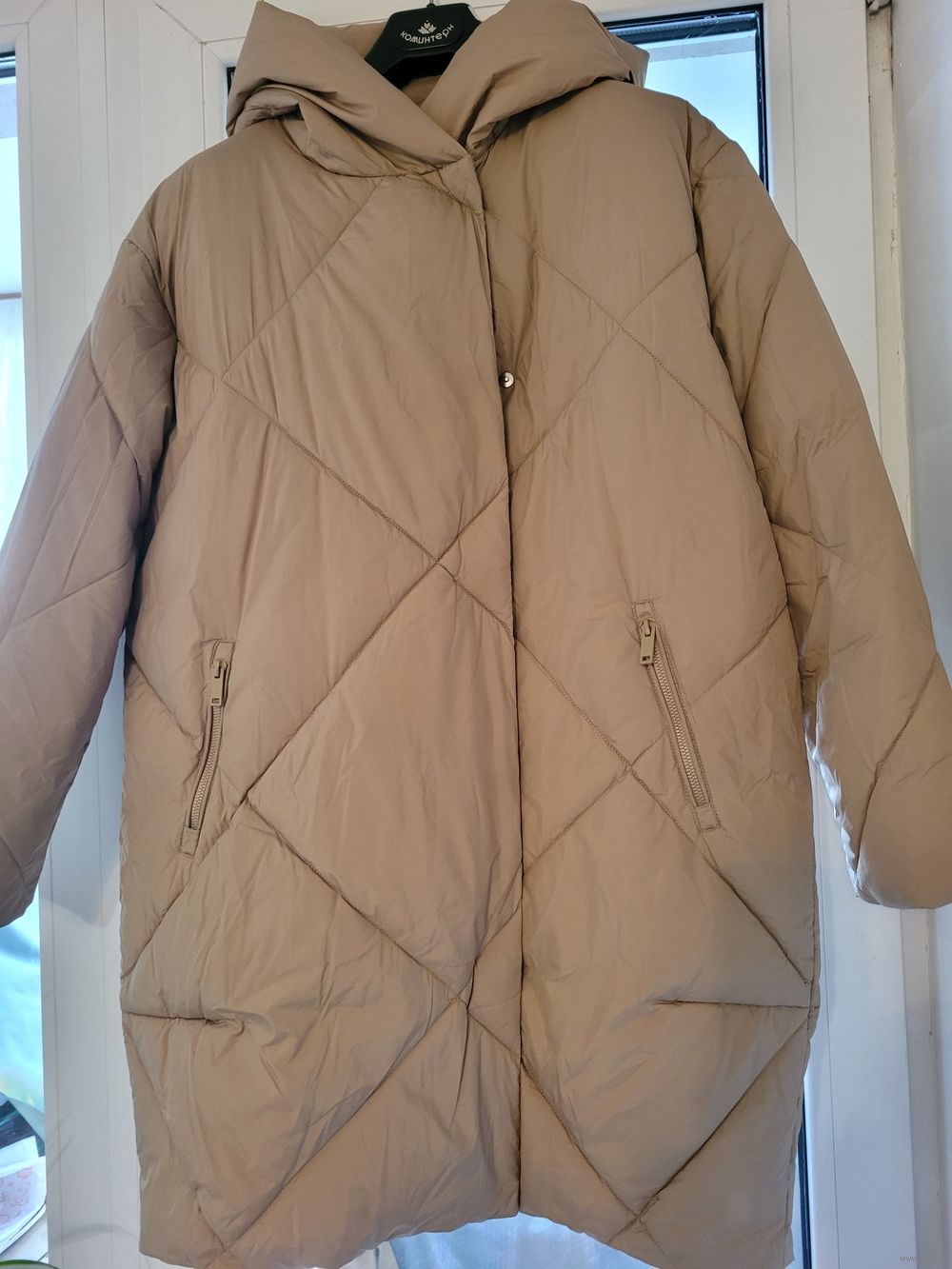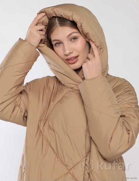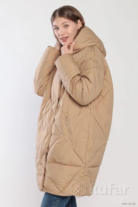 Пальто стеганое на утеплителе SORONA AURA с капюшоном. Оверсайз. Не ношено, но бирка снята. Цвет- песочный, как на модели.
