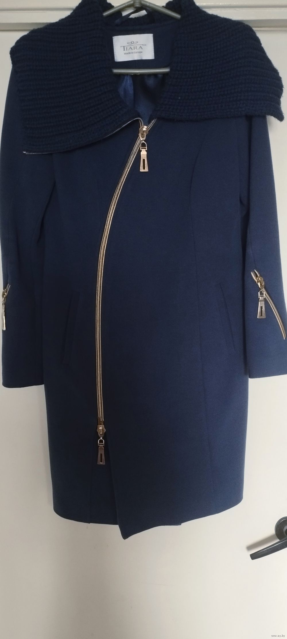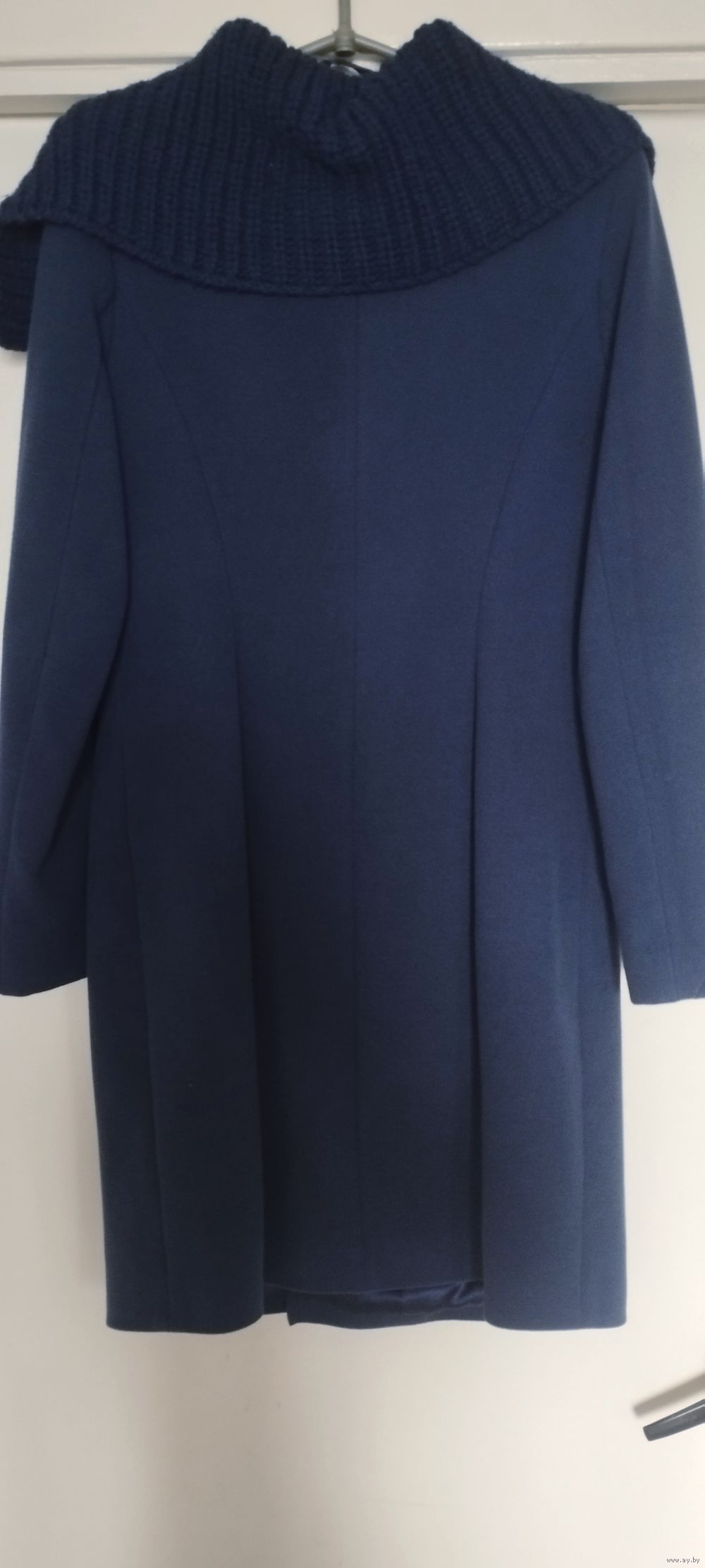 Пальто весна-осень в хорошем состоянии, воротник вязанный, на молнии, есть пояс, молния золотистая. Цвет синий. Размер ориентировочно на 44, длина по спинке 90 см, рукав - 62 см. Цена 50 рублей. Минск , Серебрянка, проспект Рокоссовского