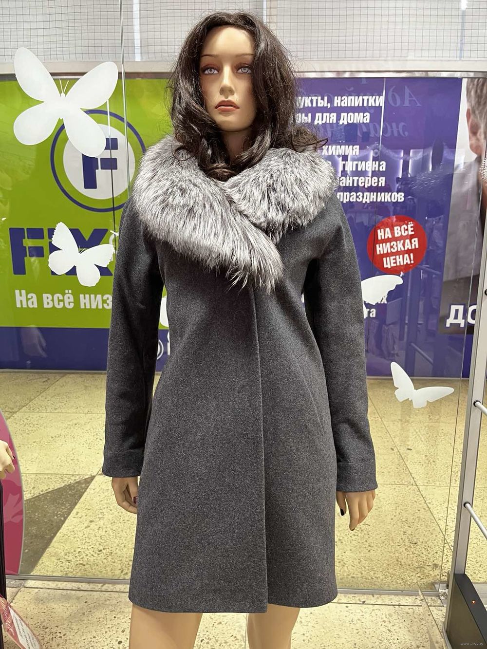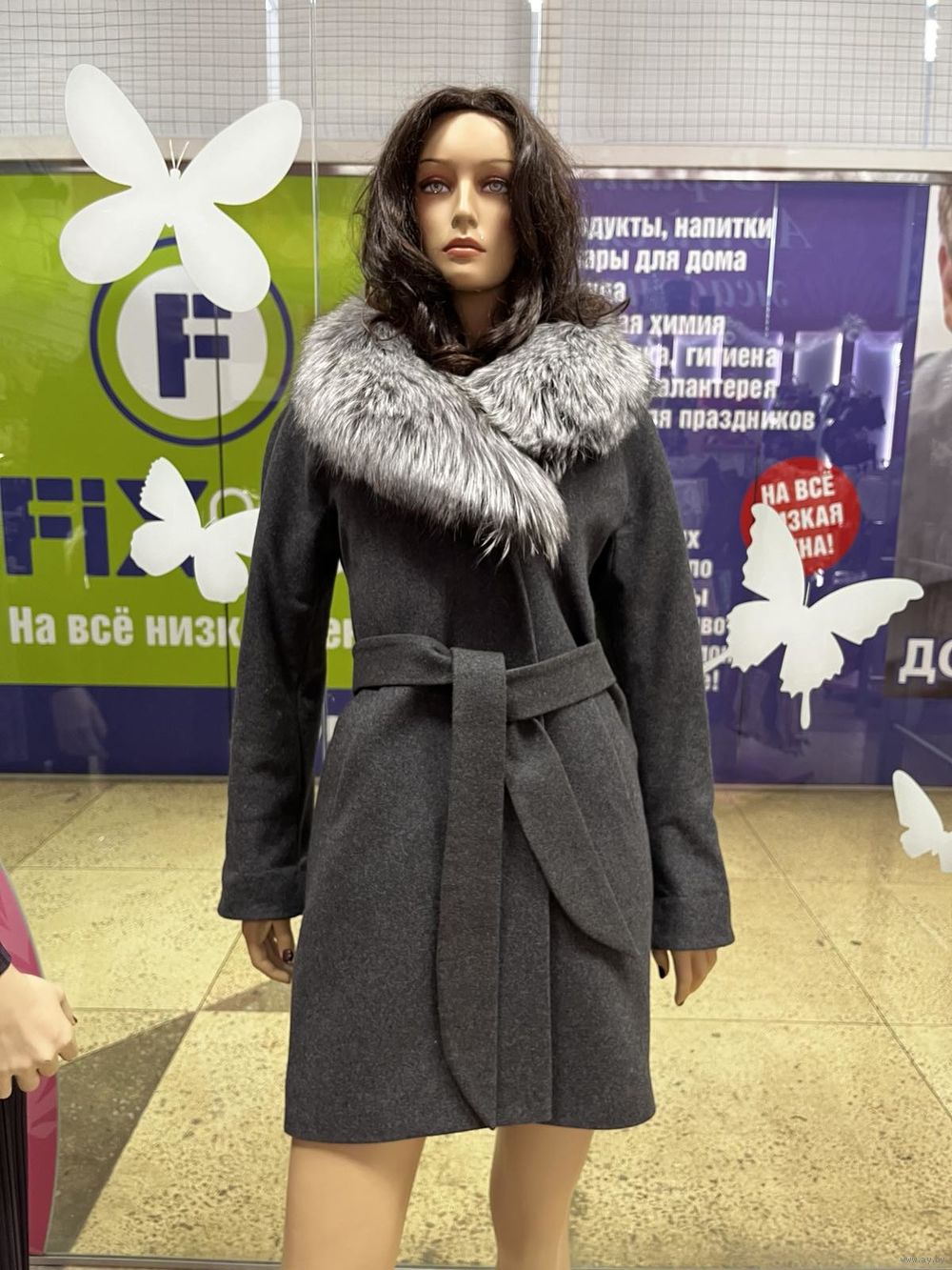Натуральный мех (чернобурка) отстегивается.