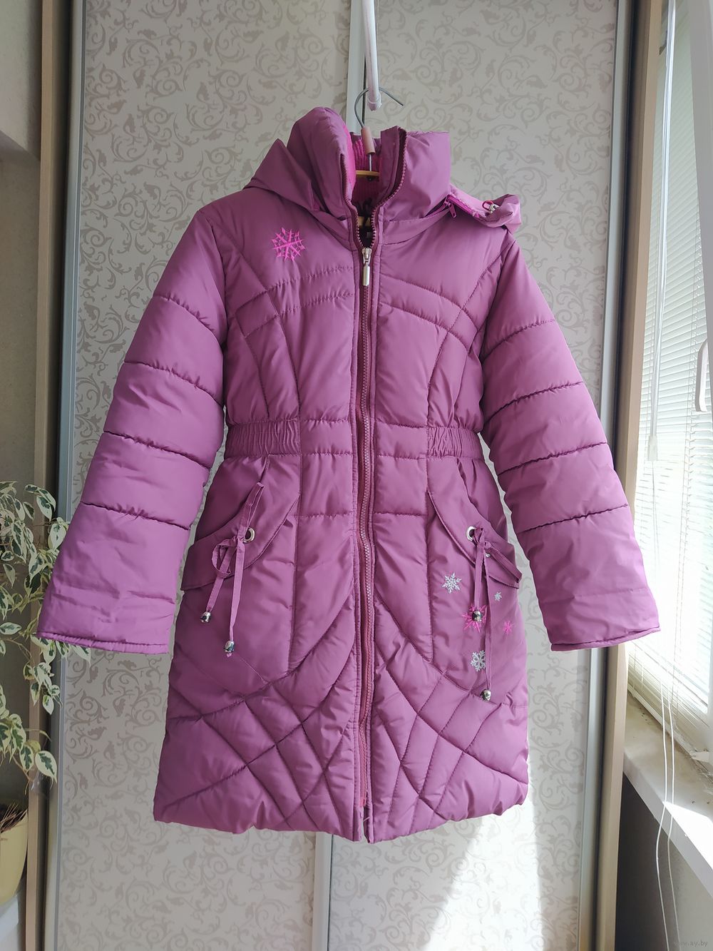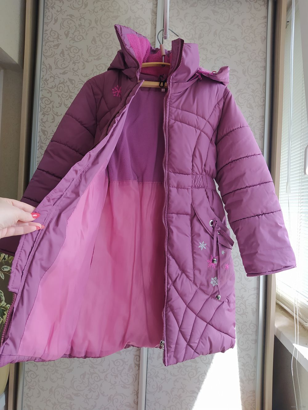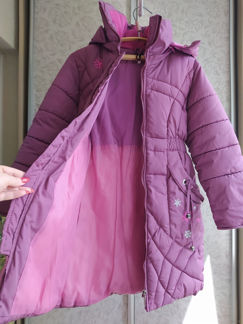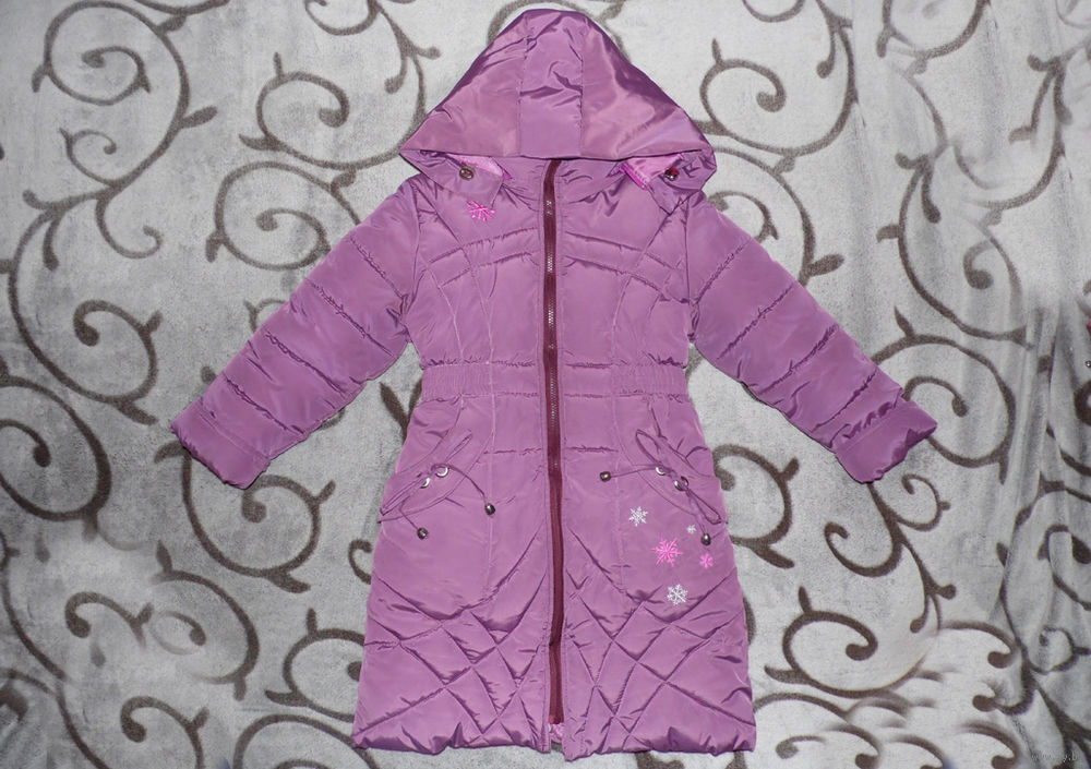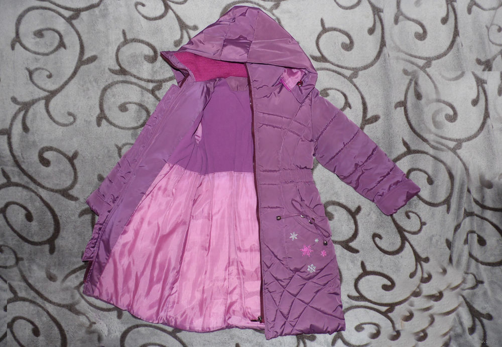 Зимнее пальто. ОГ 64см, ОБ 68см, рост 128см. Ширина по талии 36см. Длина по центру спинки 77см. Длина рукава от плеча 50см. Можно сделать отворот.