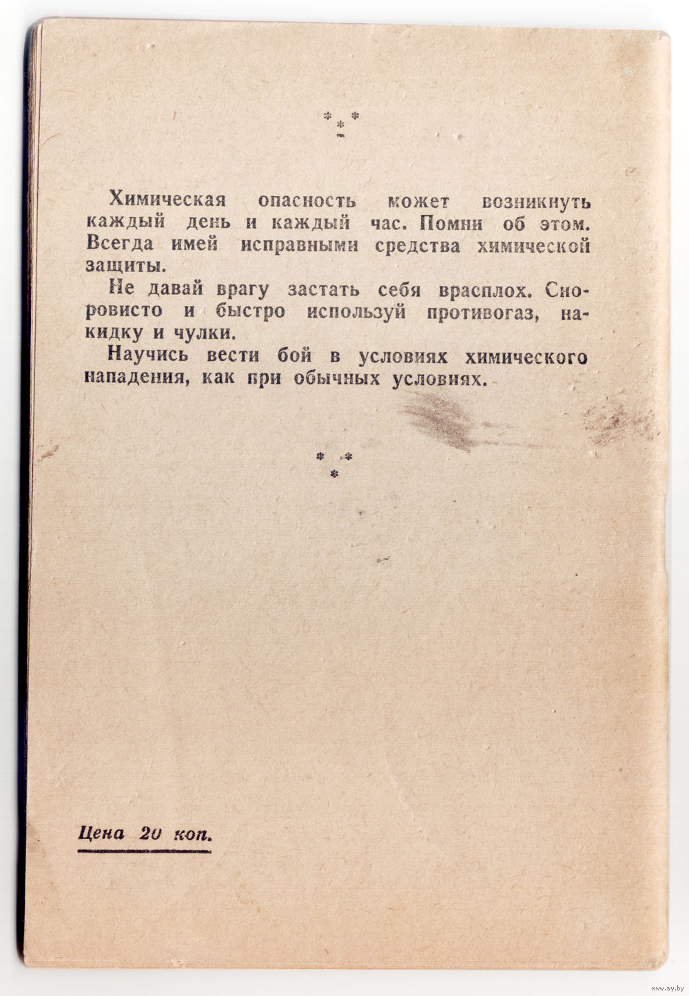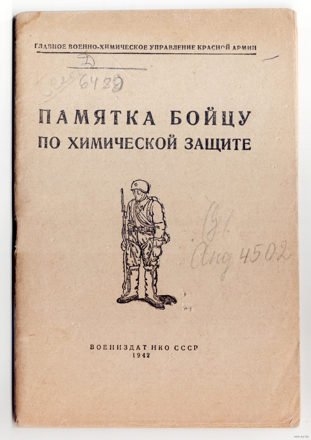 Оригинальная, редкая памятка бойцу по химической защите. Воениздат НКО 1942-й год.