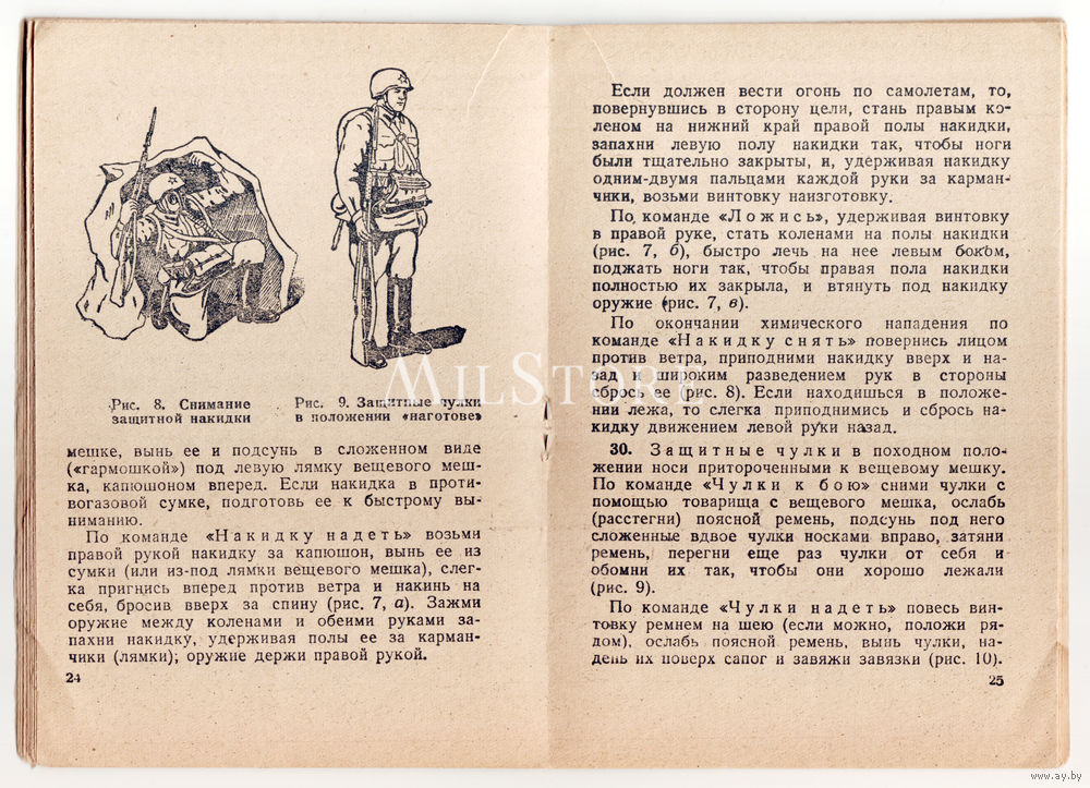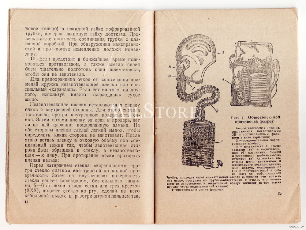 Подробное описание по работе с противогазом, множество графических иллюстраций.