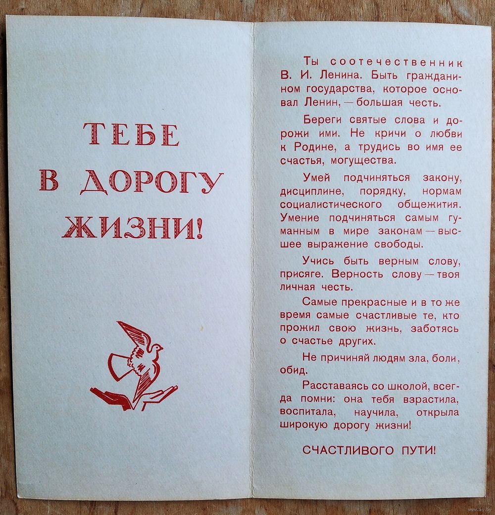 Памятка выпускнику средней школы " Тебе в дорогу жизни ". 1970-80-е