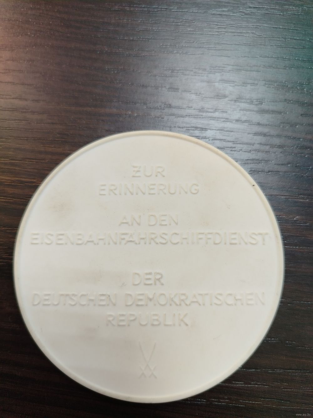 Памятная медаль посвященная железнодорожной паромной переправе между городами Засниц (ГДР) и Треллеборг ( Швеция ) изготовлена из майсенского фарфора вес 107 грамм ширина 92мм