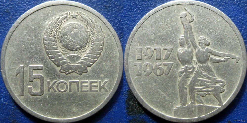 Памятная монета 15 копеек 1967 года. 50 лет ВОСР.