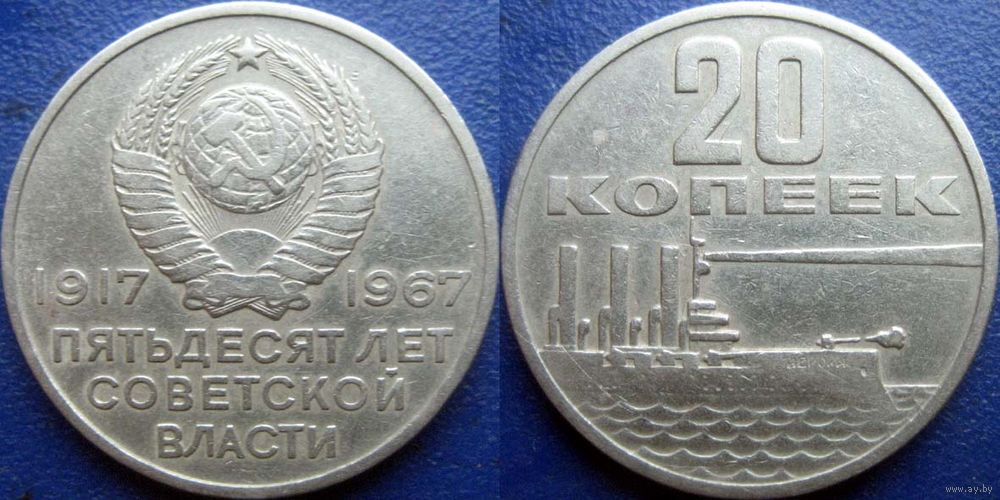 Памятная монета 20 копеек 1967 года. 50 лет ВОСР