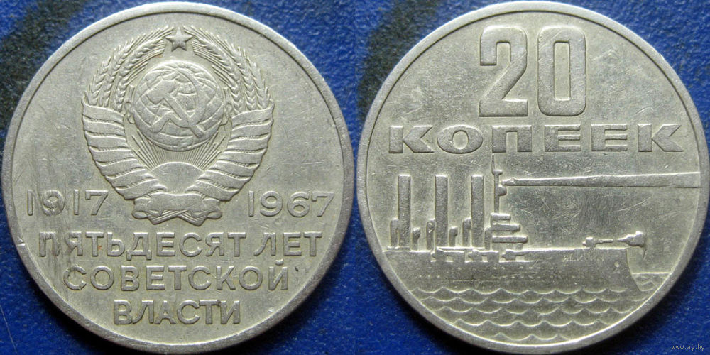 Памятная монета 20 копеек 1967 года. 50 лет ВОСР.