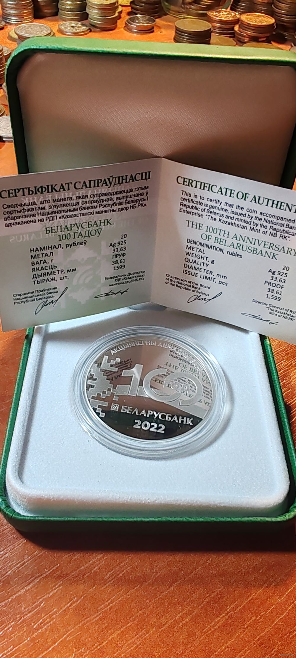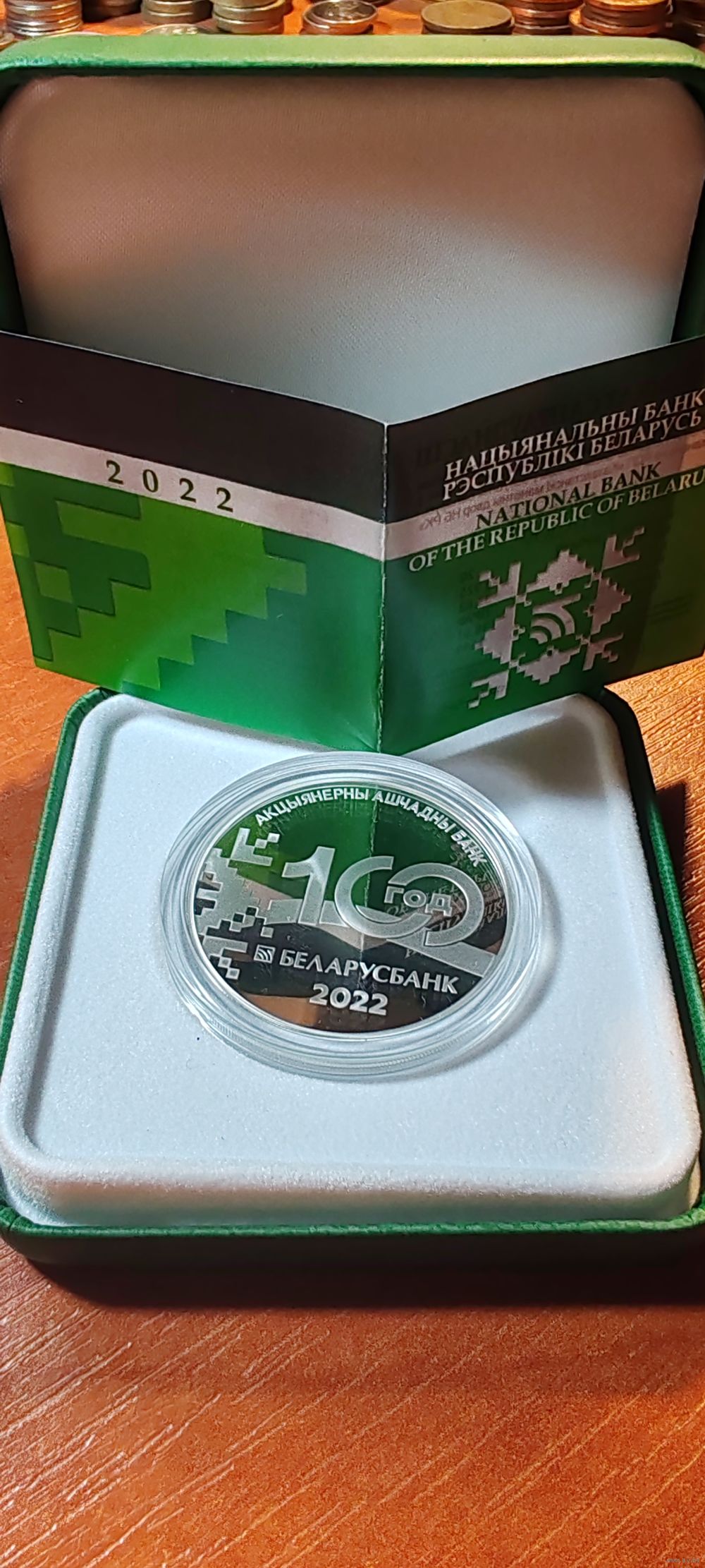 Памятная монета "Беларусбанк. 100 гадоў" ("Беларусбанк. 100 лет") серебро в футляре