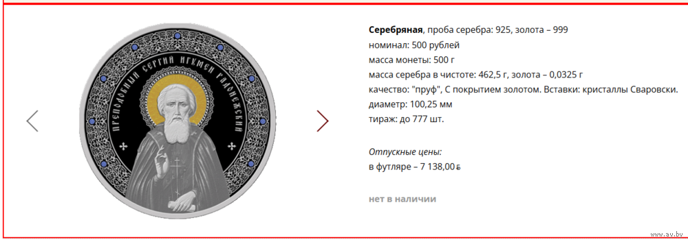| Качество: "пруф", С покрытием золотом. Вставки: кристаллы Сваровски. | |