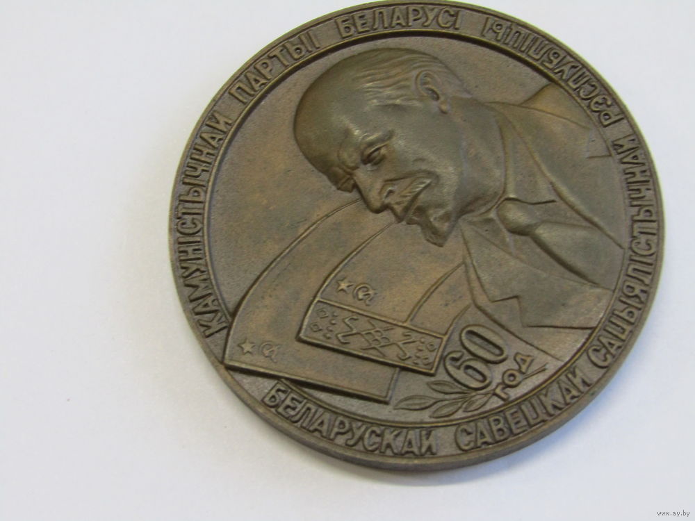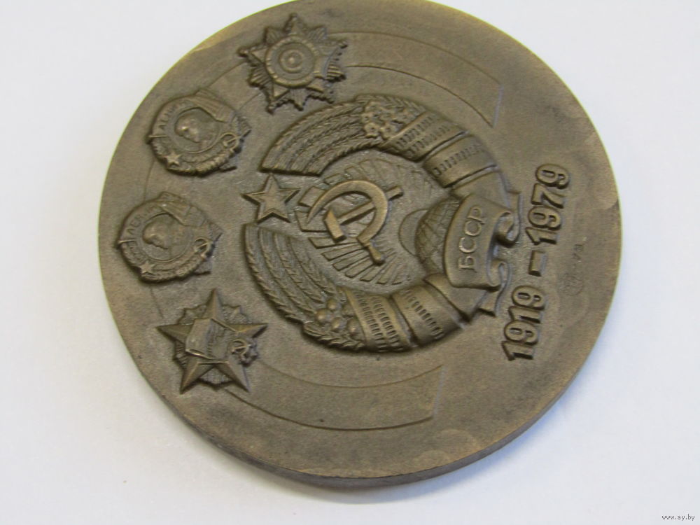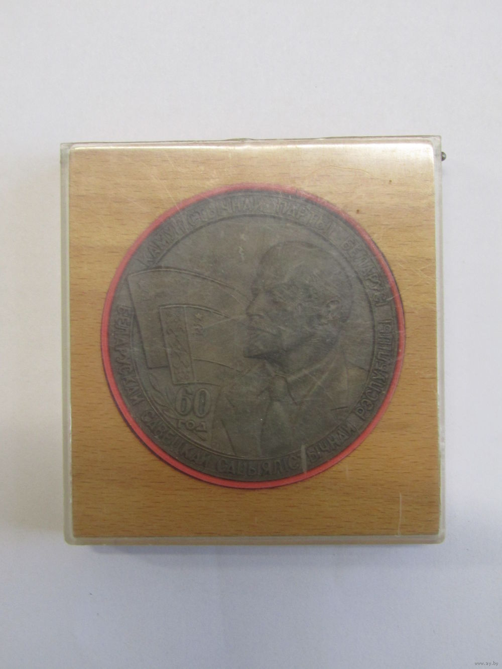 Памятная настольная медаль. "1919-1979". "60 лет коммунистической партии Белоруссии". "60 лет КПБ БССР". Бронза. В оригинальном футляре. Оригинал. Ретро СССР. м