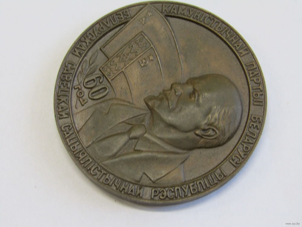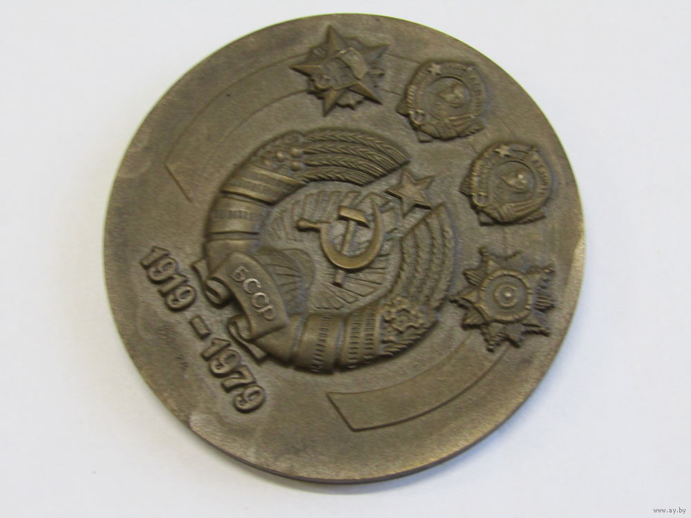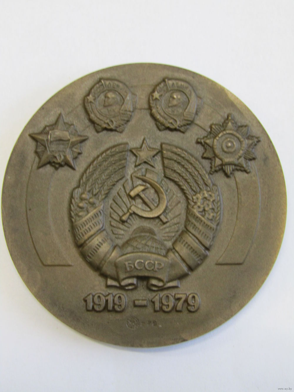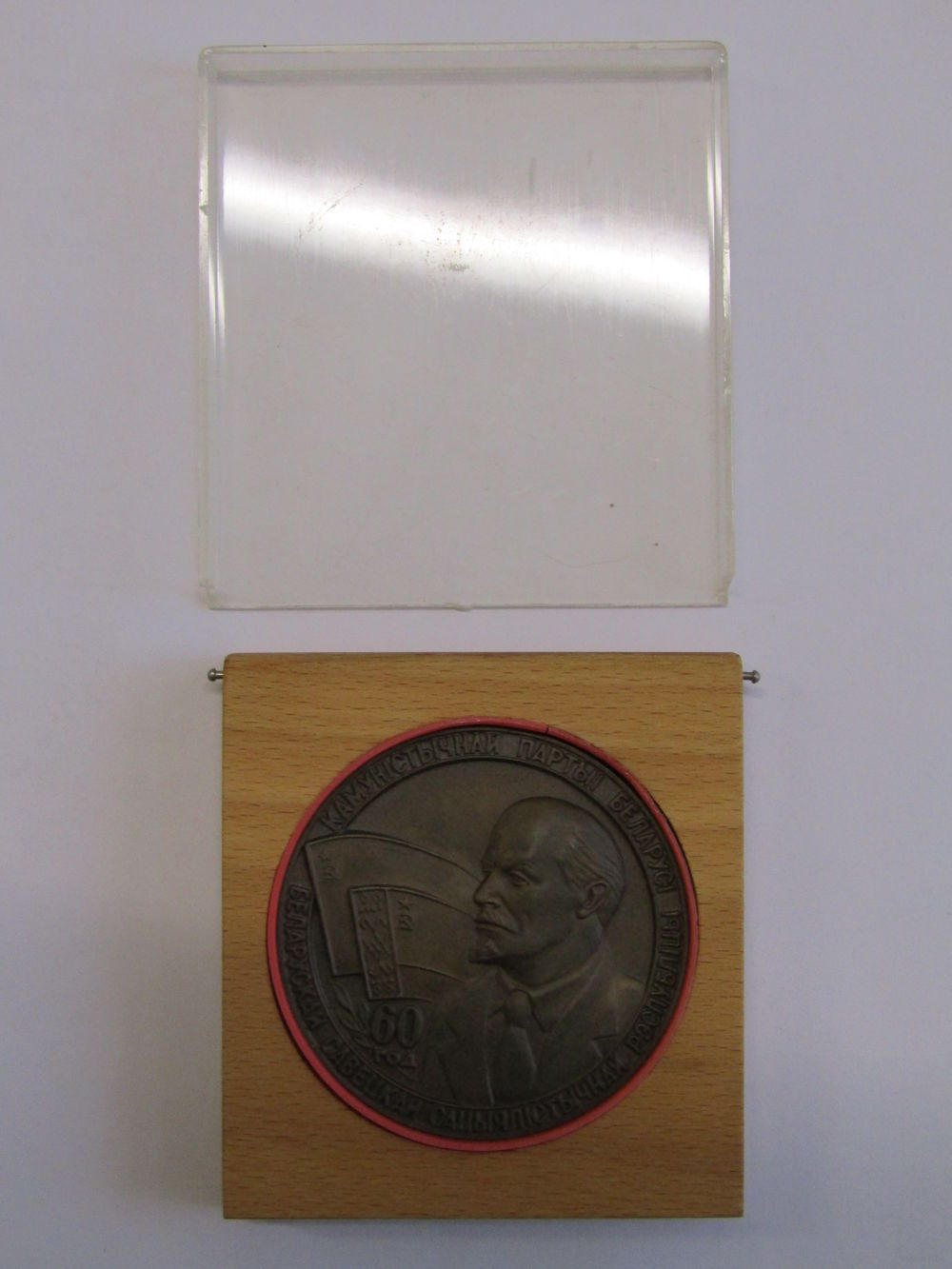 Памятная настольная медаль. "1919-1979". "60 лет коммунистической партии Белоруссии". "60 лет КПБ БССР". Бронза. В оригинальном футляре. Оригинал. Ретро СССР. м