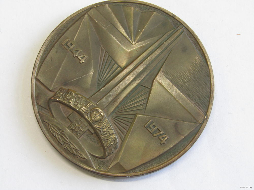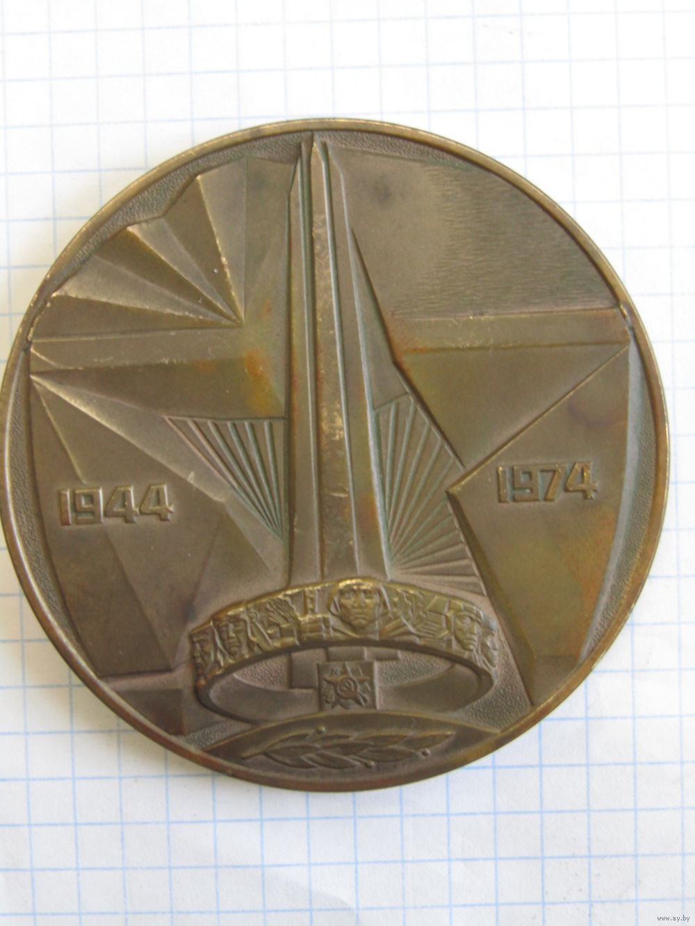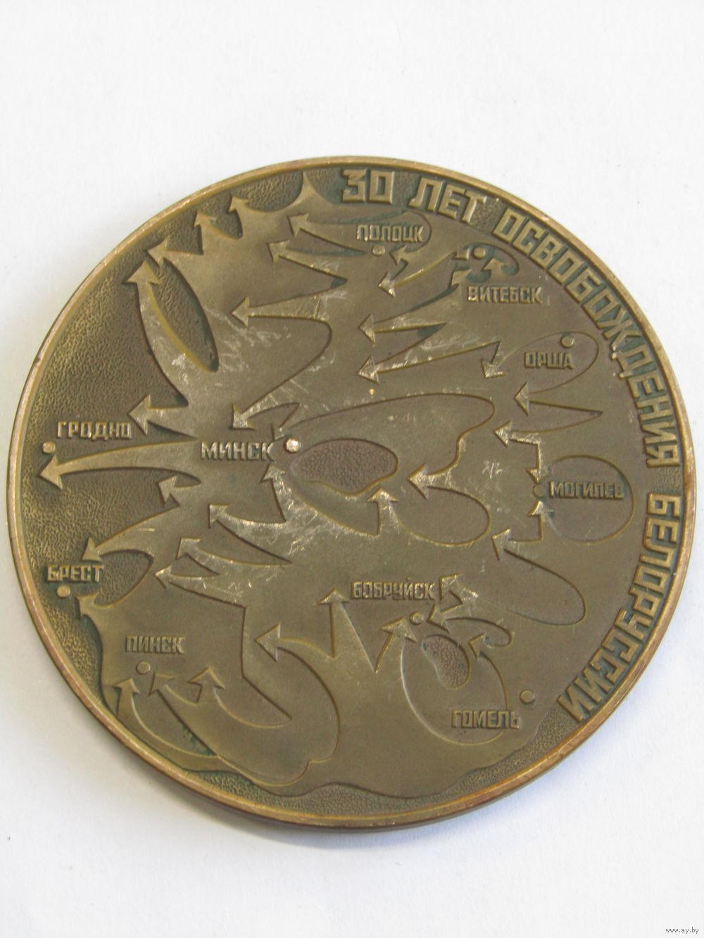 Памятная настольная медаль. Бронза. "30 лет Освобождения Белоруссии от немецко-фашистских захватчиков". 1944-1974. ВОВ. Ретро СССР. м