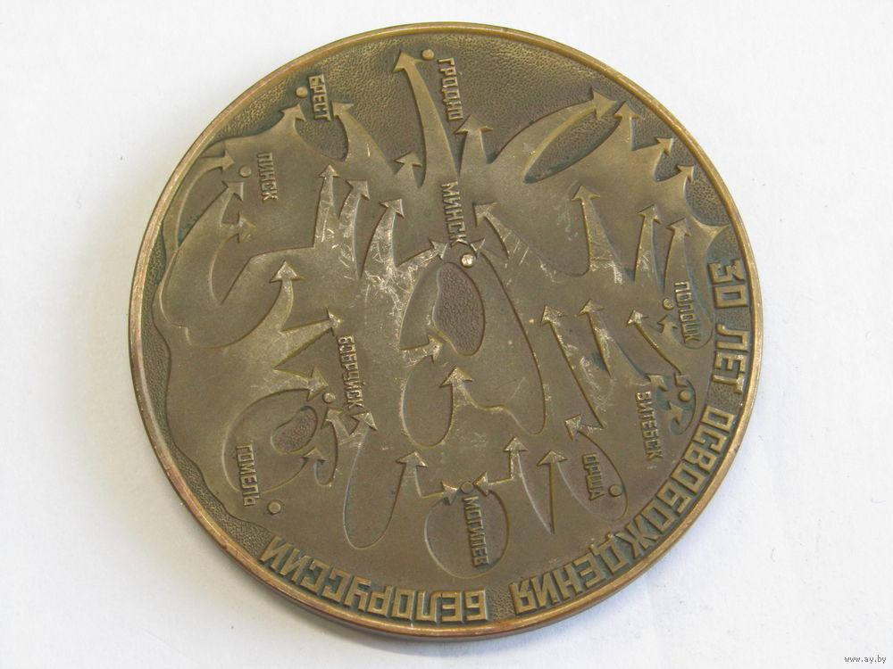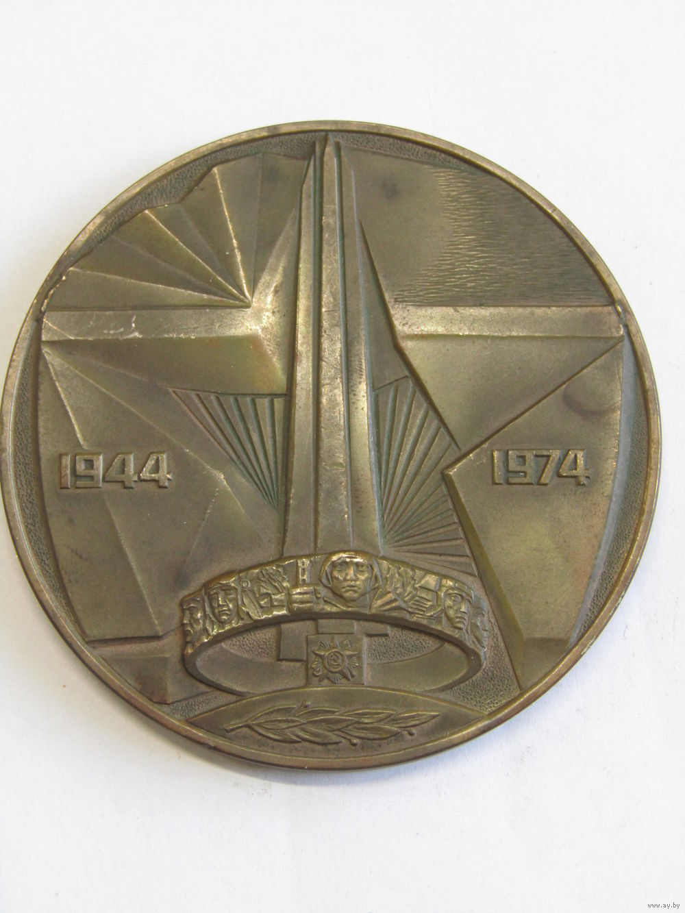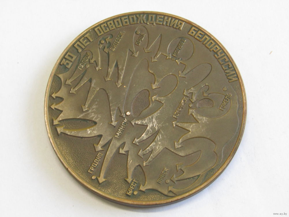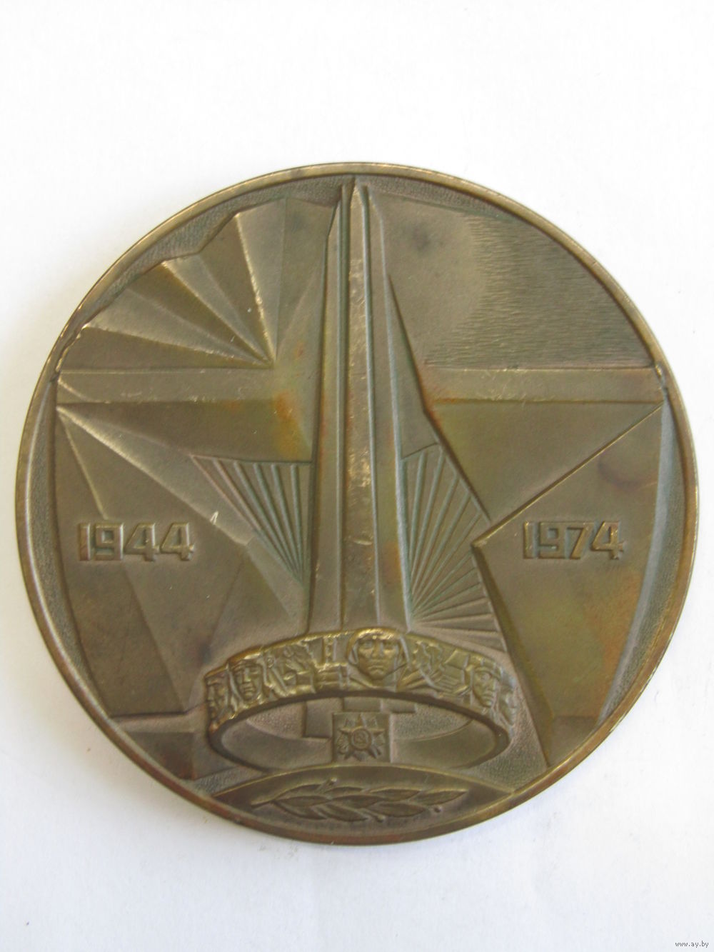 Памятная настольная медаль. Бронза. "30 лет Освобождения Белоруссии от немецко-фашистских захватчиков". 1944-1974. ВОВ. Ретро СССР. м