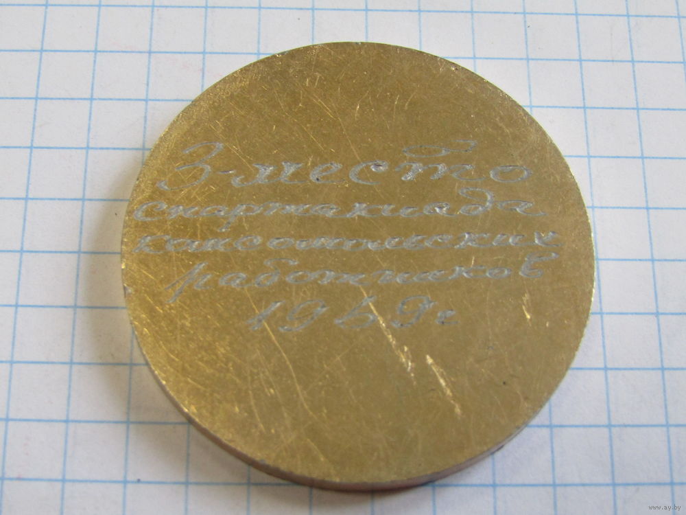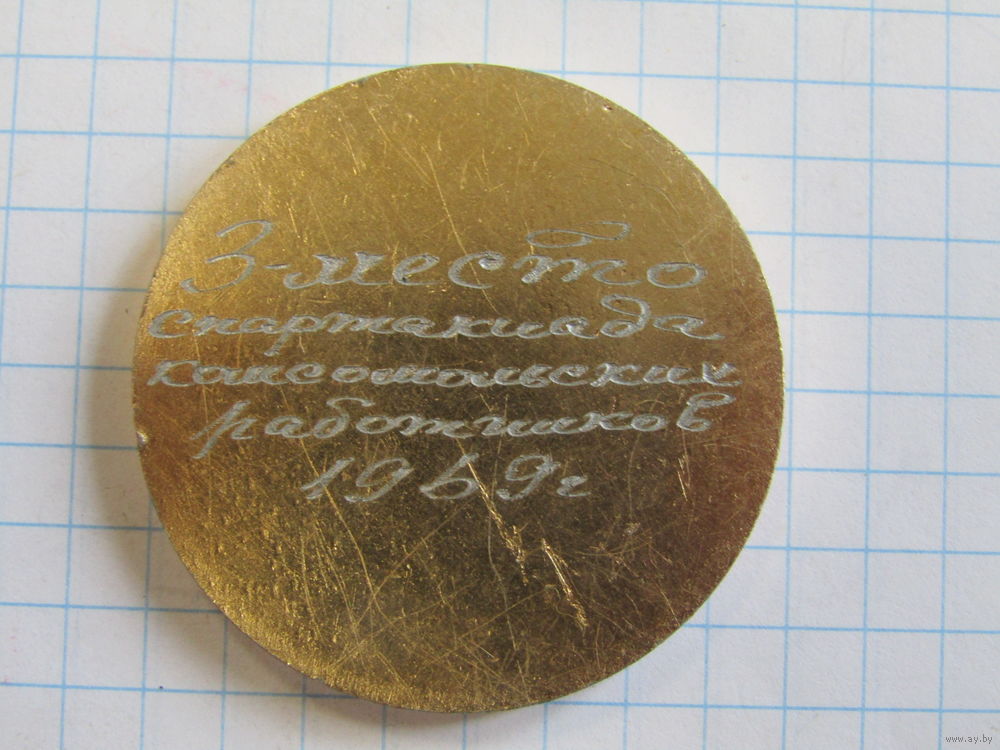 Памятная настольная медаль. "Спартакиада комсомольских работников". "50 год БССР". "50 лет БССР". ВЛКСМ. Ретро СССР 1969г.