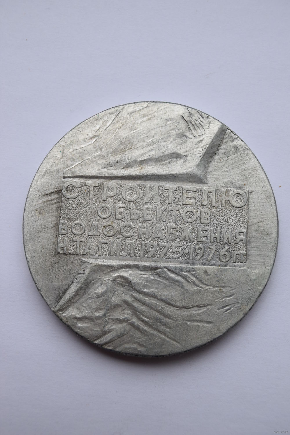 Памятная настольная медаль. "Строителю объектов водоснабжения 1975-1976г.". г. Нижний Тагил. Ретро СССР.