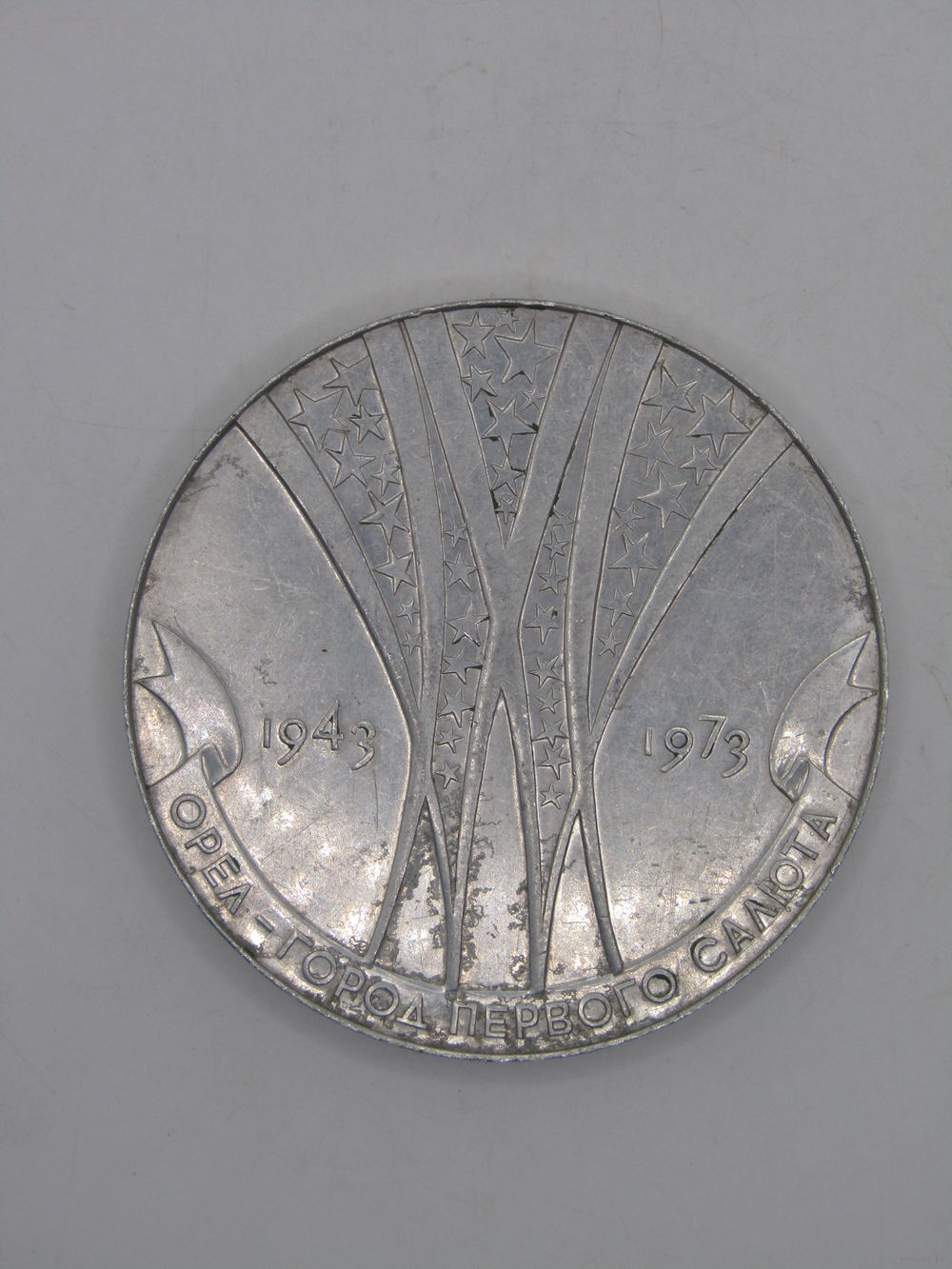 Памятная настольная медаль. "Тридцатилетие освобождения города Орла". "Орел - город первого салюта 1943-1973". Ретро СССР 1973 г. м