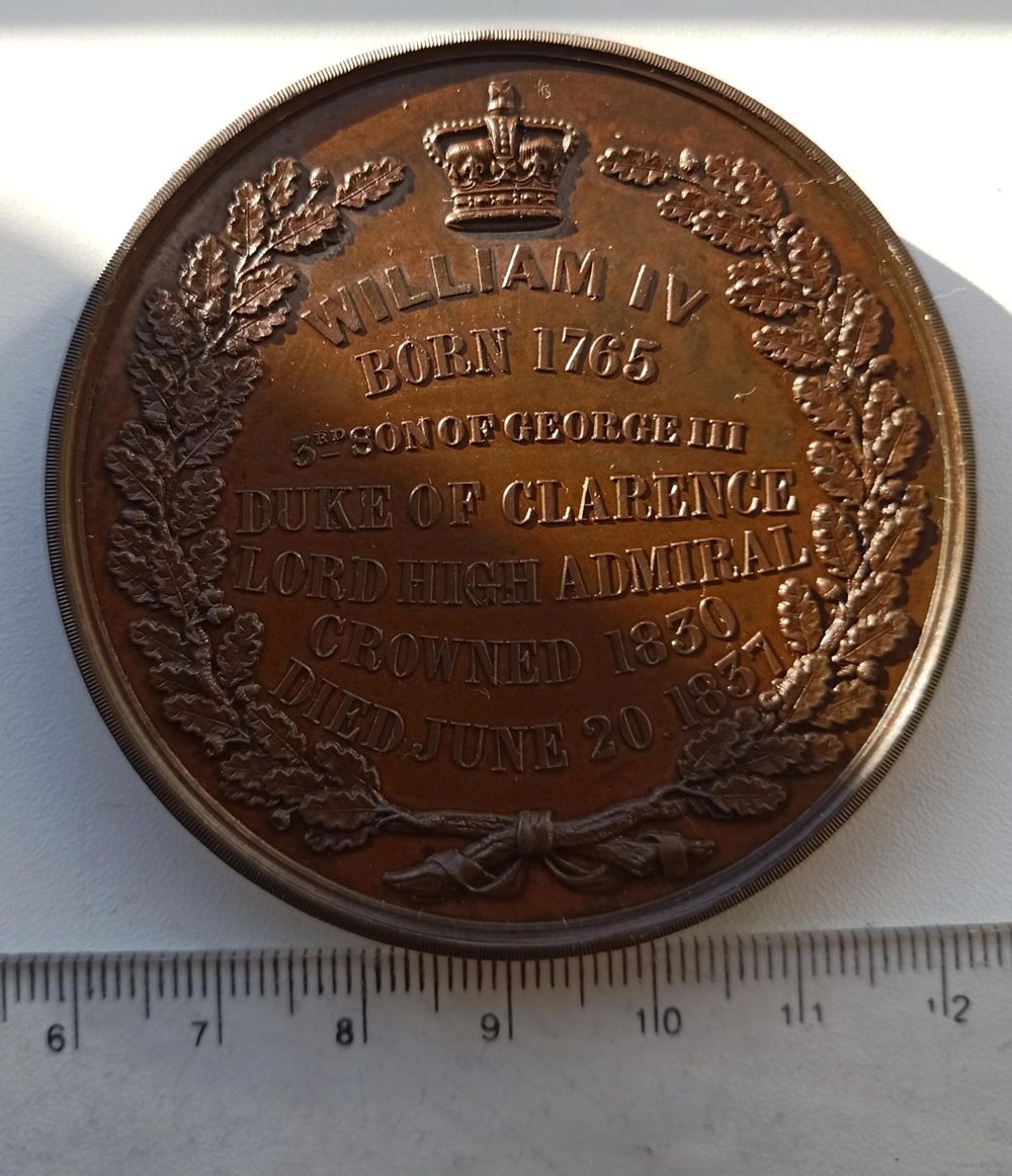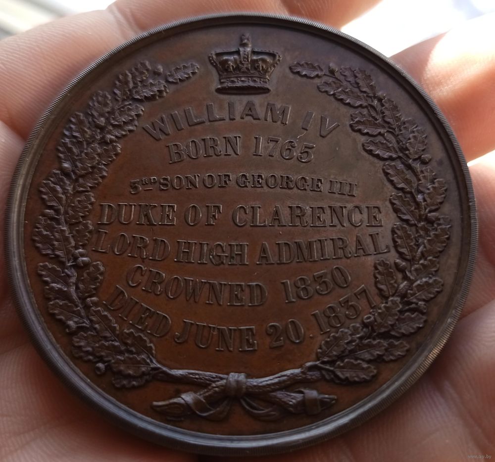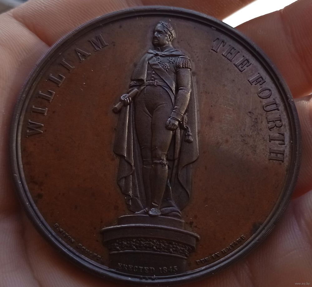 Эта бронзовая медаль была выпущена в Соединенном Королевстве в честь возведения памятной статуи Вильгельму IV. Numista