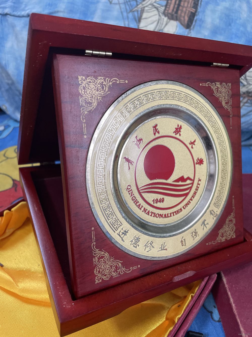 Это сувенирная настольная табличка, посвященная Цинхайскому национальному университету (Qinghai Nationalities University), основанному в 1949 году.состояние на фото