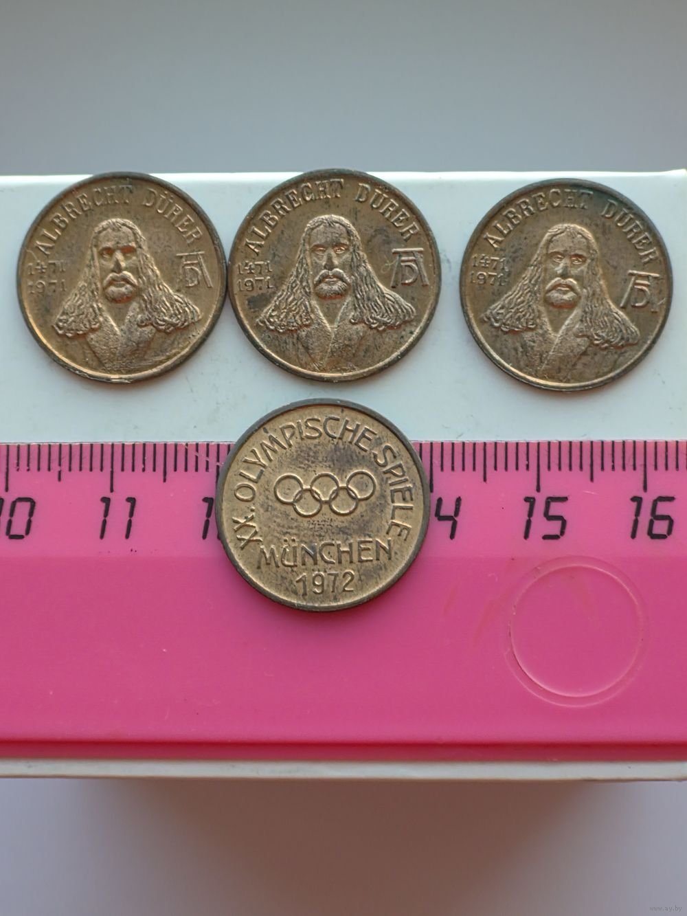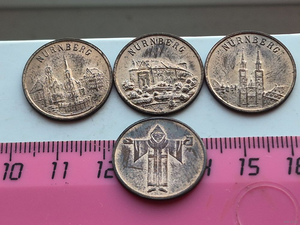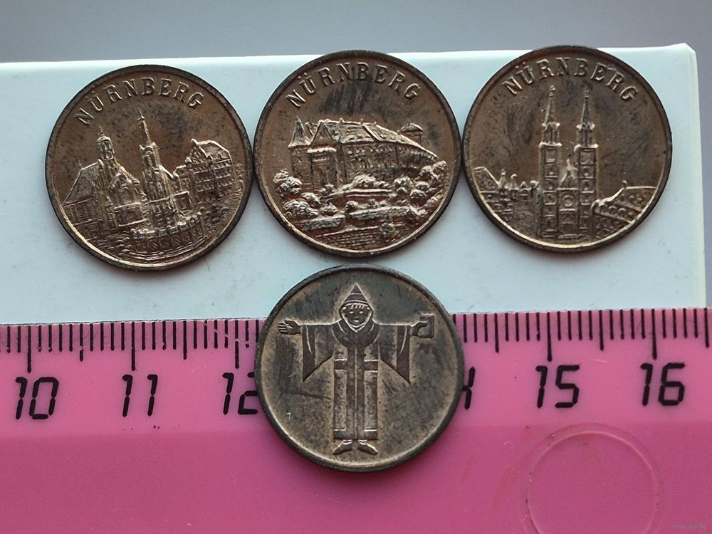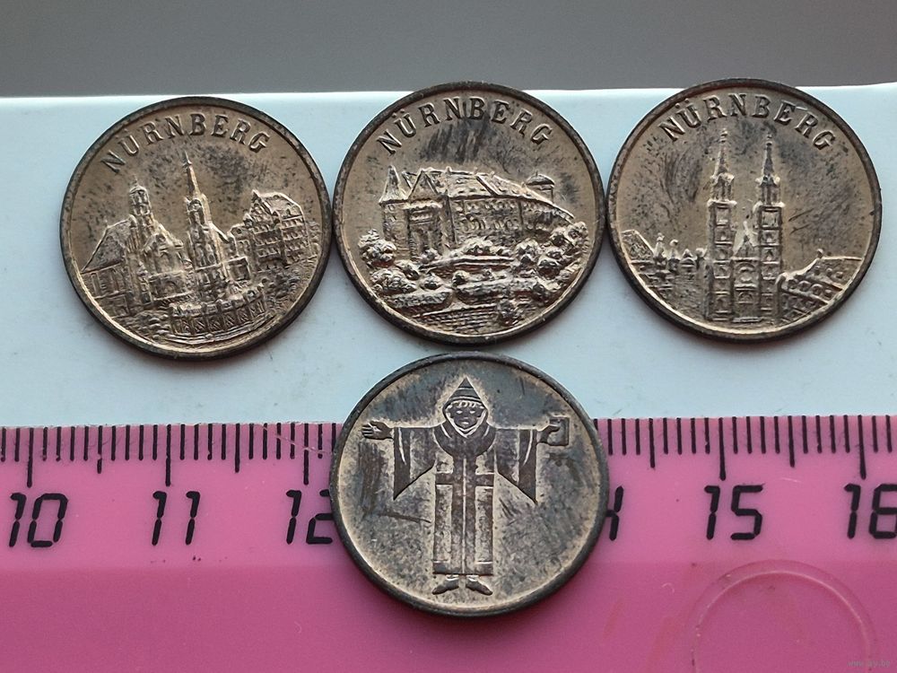 Памятные медали (жетоны) ФРГ. Лот состоит из 4-х штук. Медь. Чеканка. Вес 2,27 грамма. Диаметр 20,0 мм. Медали не чищены. 45256