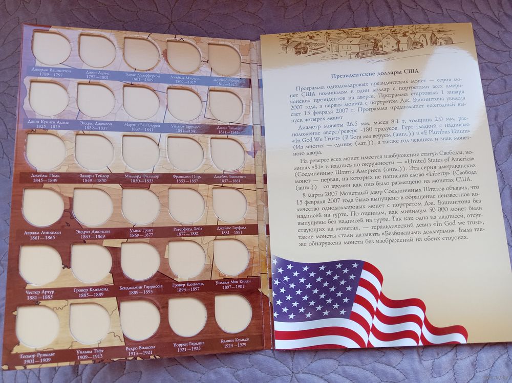 Альбом-планшет под памятные однодолларовые монеты США.