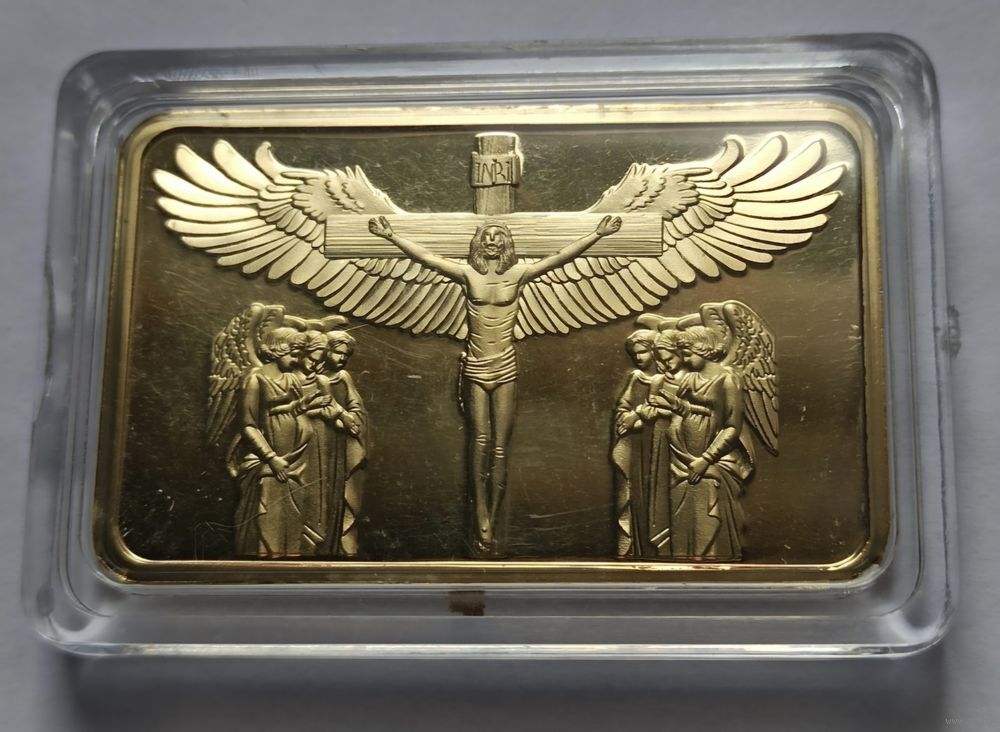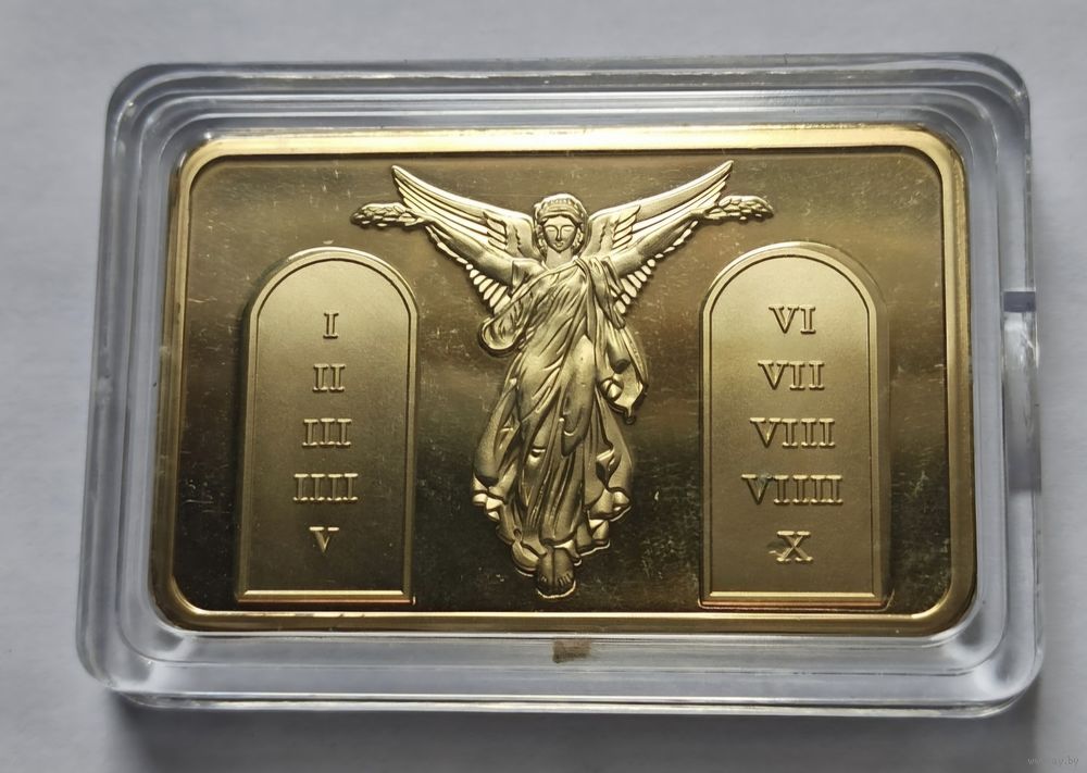 Памятный ( сувенирный) слиток, посвящённый 10 библейские заповедям. Капсула. Металл жёлтого цвета. 2,5 на 4 см. Возможен обмен.
