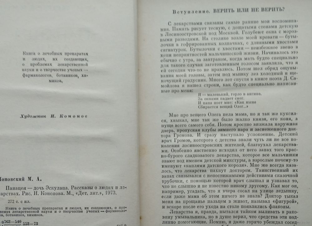 Большой формат. Тираж 15000 экз. 274 стр. Книга о лечебных препаратах и людях, их создающих, о проблемах лекарственной науки и о творчестве учёных — фармакологов, ботаников, химиков.