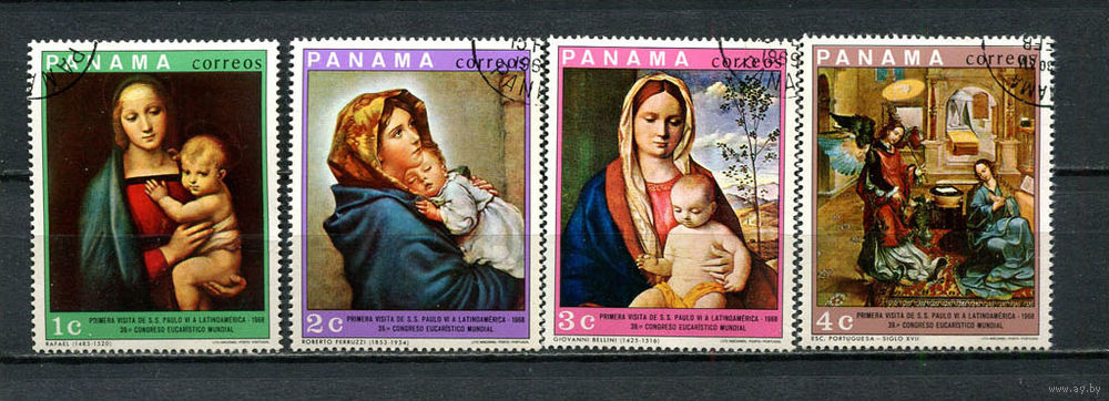 Панама - 1969 - Искусство. Картины. Первый визит Папы Павла VI в Латинскую Америку. - 4 марки. Гашеные. (Лот 37JT)-T25P5