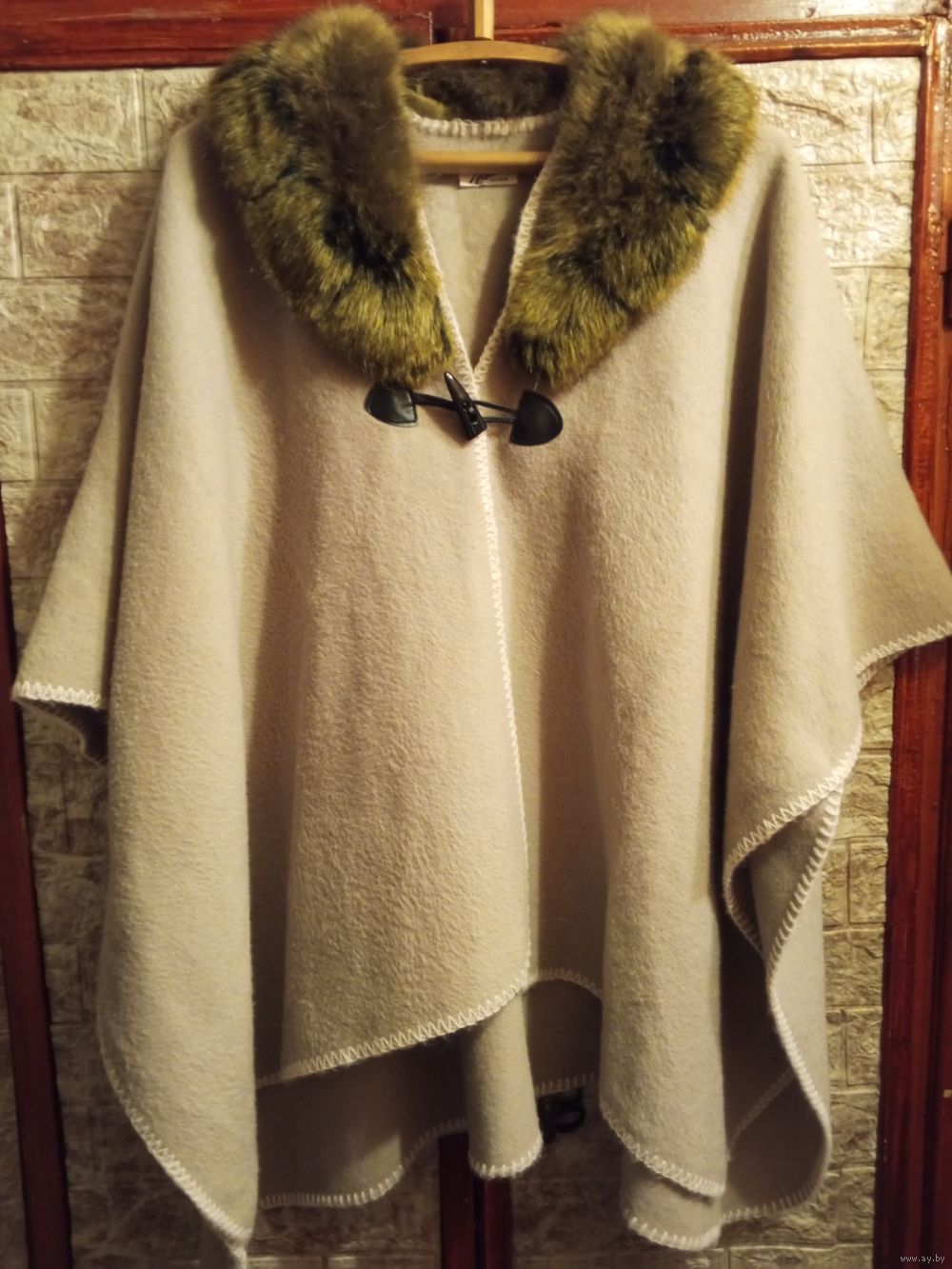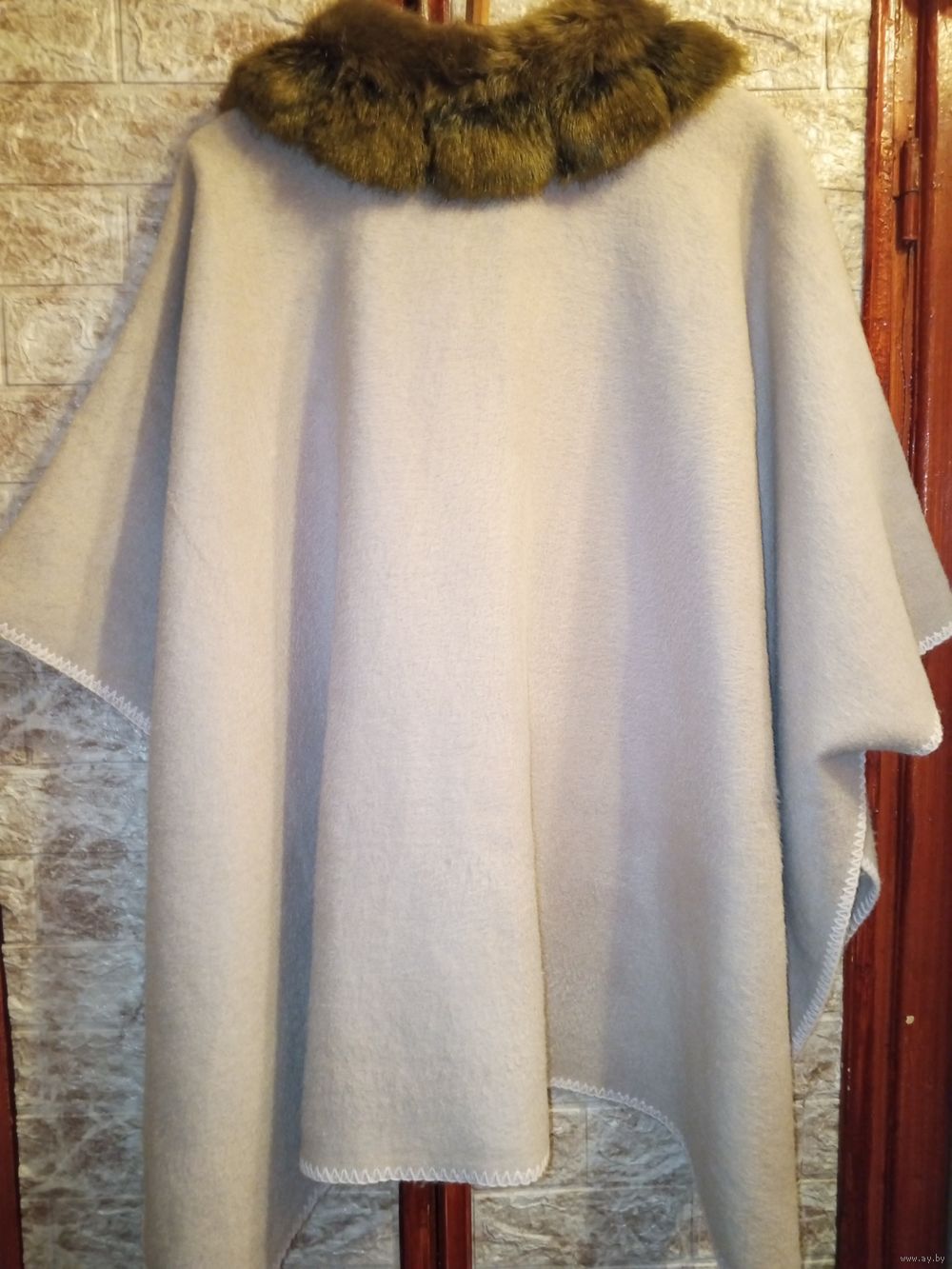 Панчо накидка в хорошем состоянии ( одето пару раз) ширина от рукава до рукава 116см, длинна по спинке 80 см. Мех искусственный съёмный.