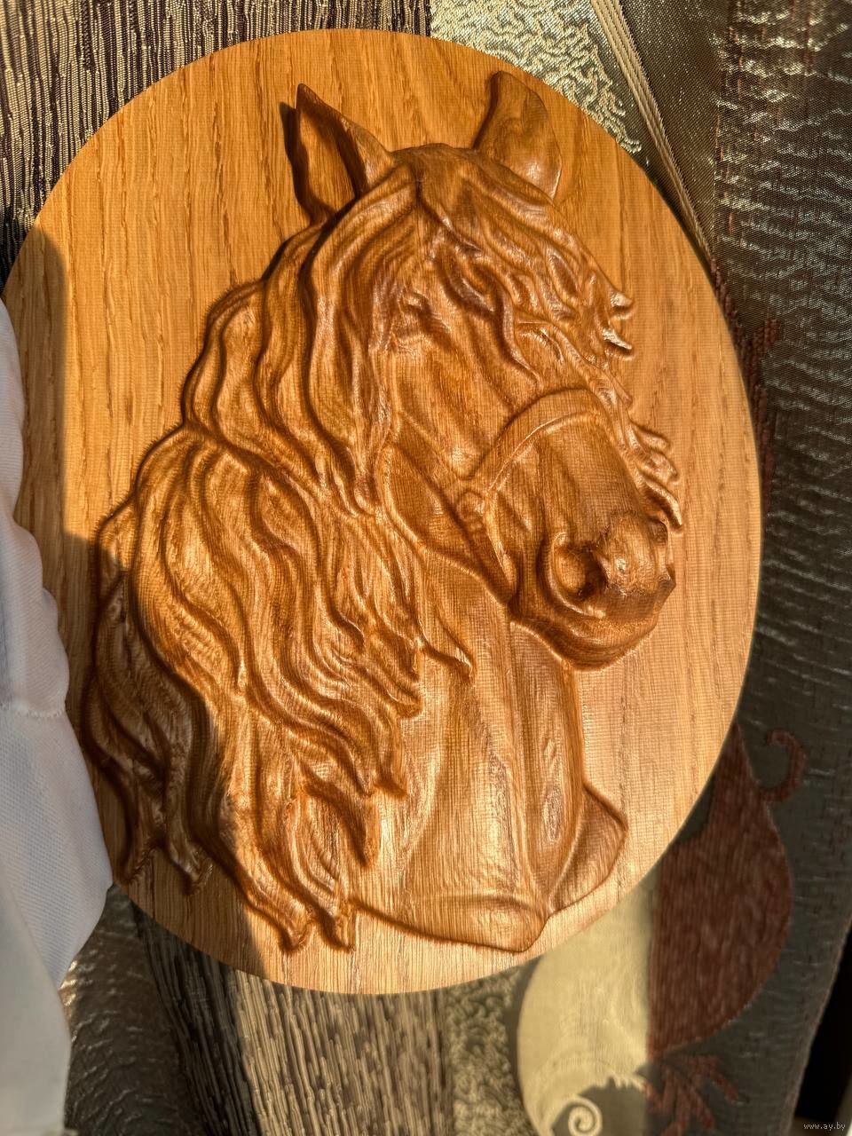 Подвес не прикручен. Если надо, мастер закрепит. Или положу в посылку вместе с винтиками. Здесь похожий https://ay.by/lot/panno-derevyannoe-loshad-kon-simvol-novogo-2026-goda-5040134458.html