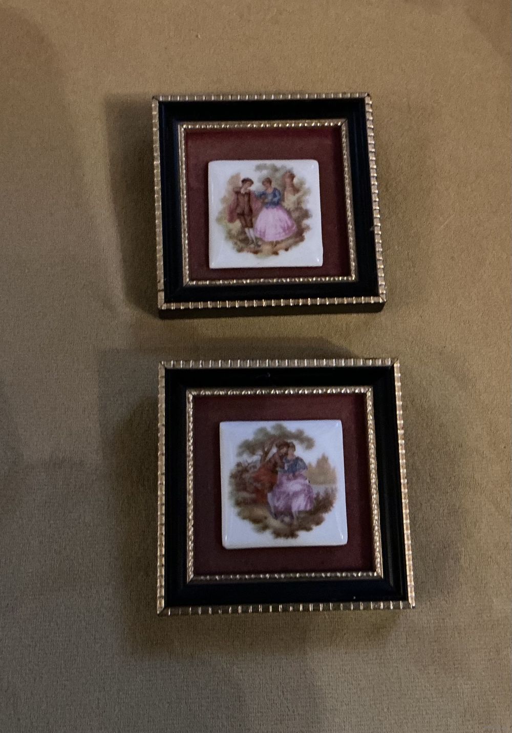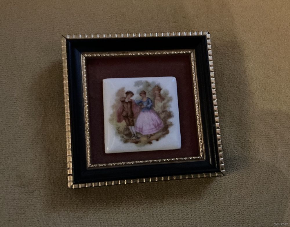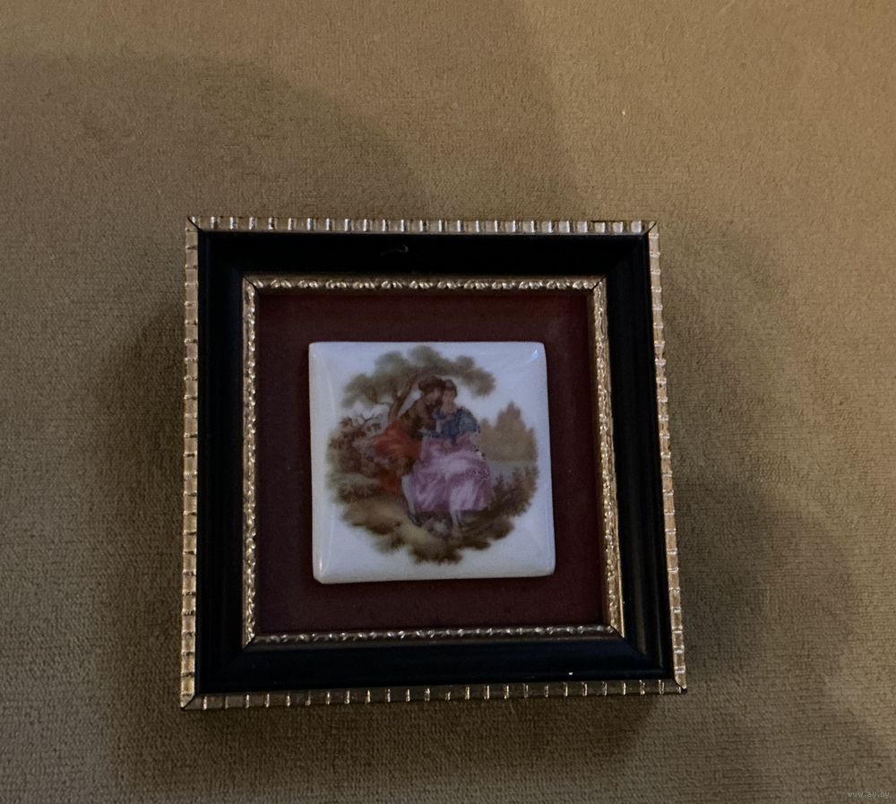 Старинное панно на стену , фарфор, бархат , 7,5 см х 7,5 см , в интерьер