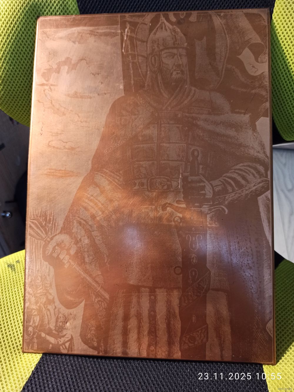 Размер 36см на 25см. Есть вмятины и царапины