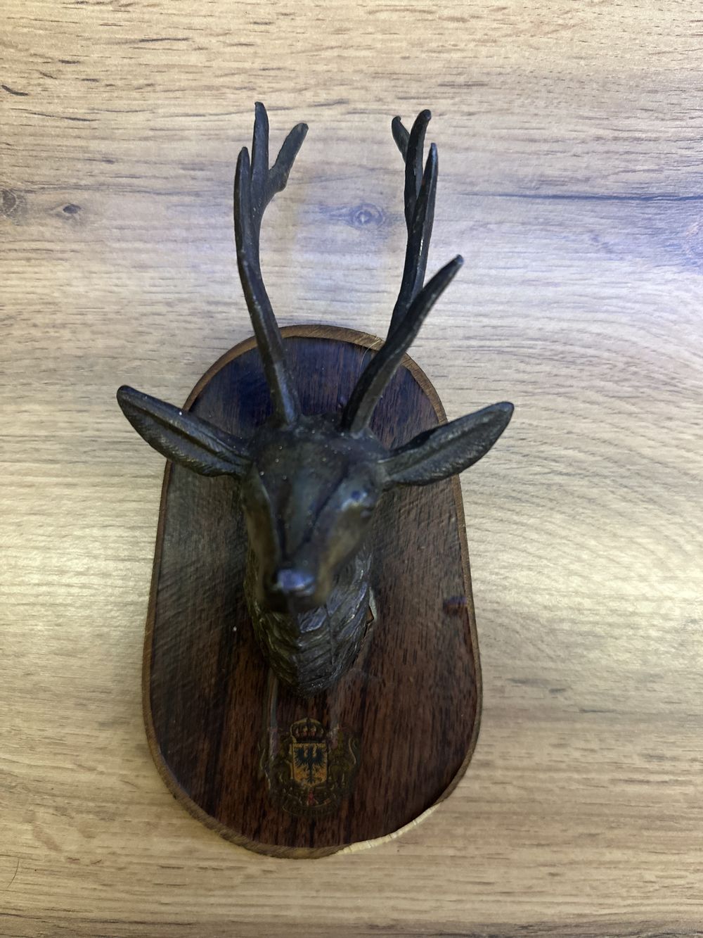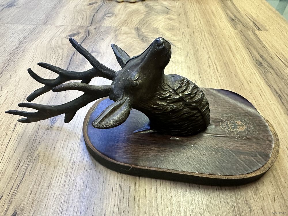 Панно, металлический олень на деревянной подставке, Европа, клеймо, много лотов с рубля