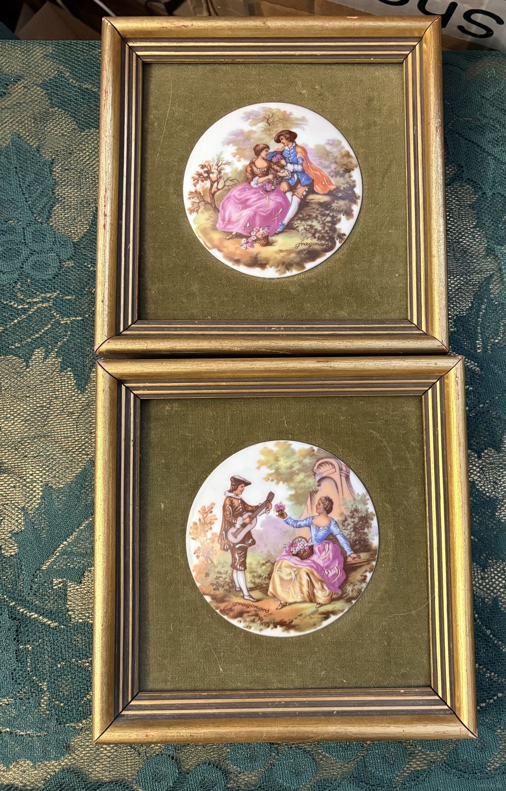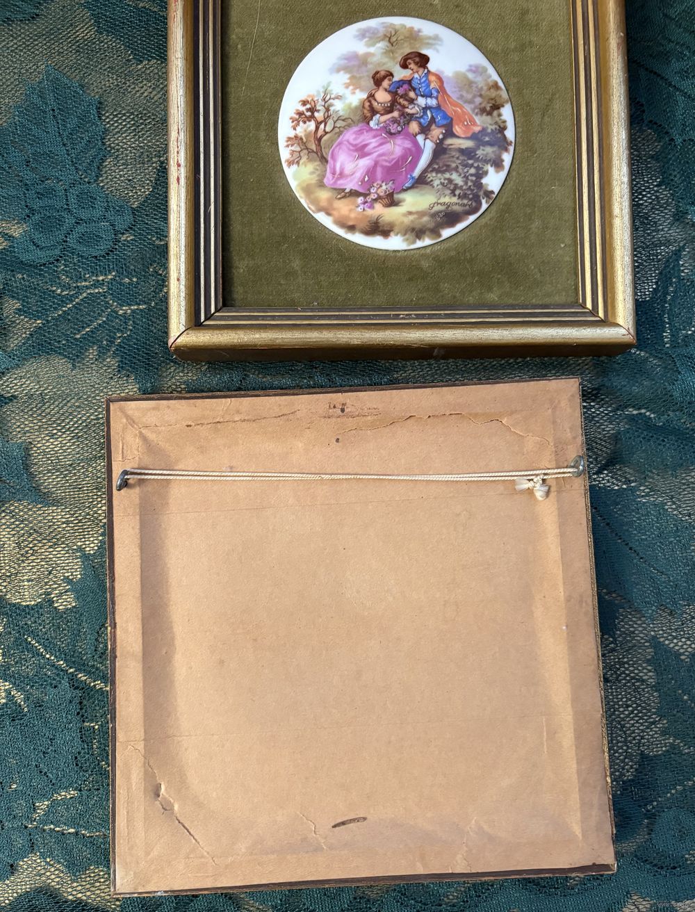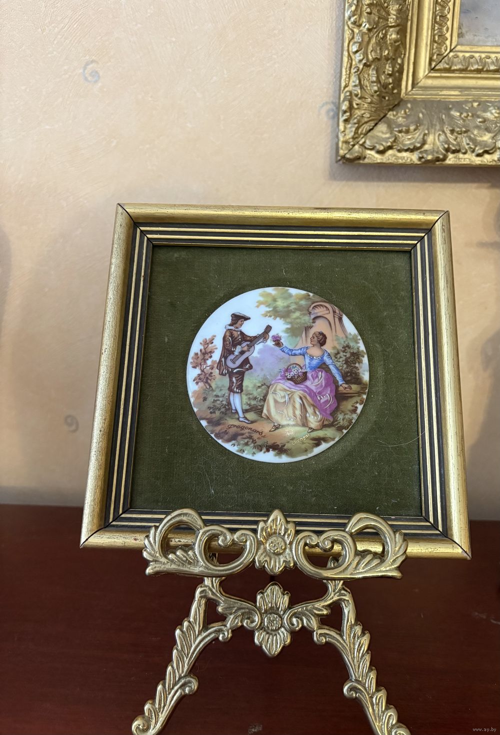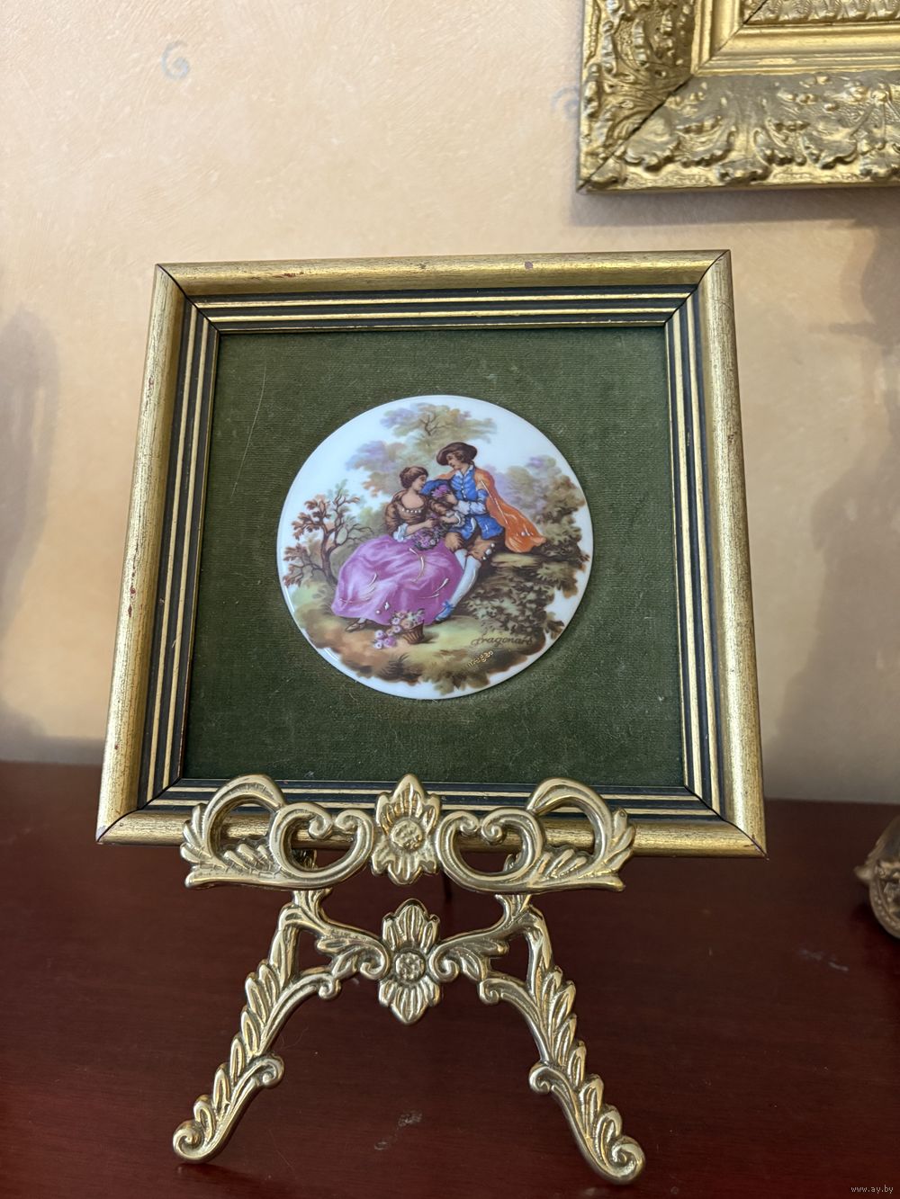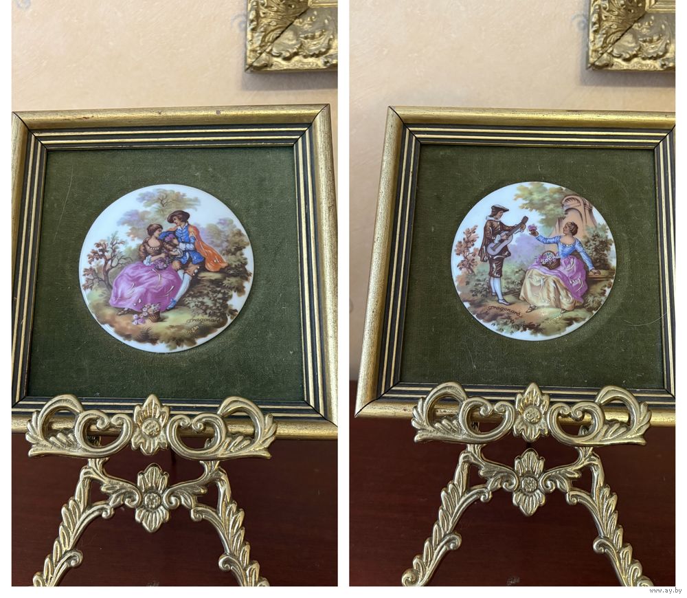 Красивые панно , цена за пару , одинаковые рамы , размер 16 см х 16 см , на стену подвес , без подставки, фарфоровые пласты Лимож