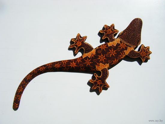 Панно. Ящерица,Геккон. Резьба по дереву,ручная роспись. Индонезия.