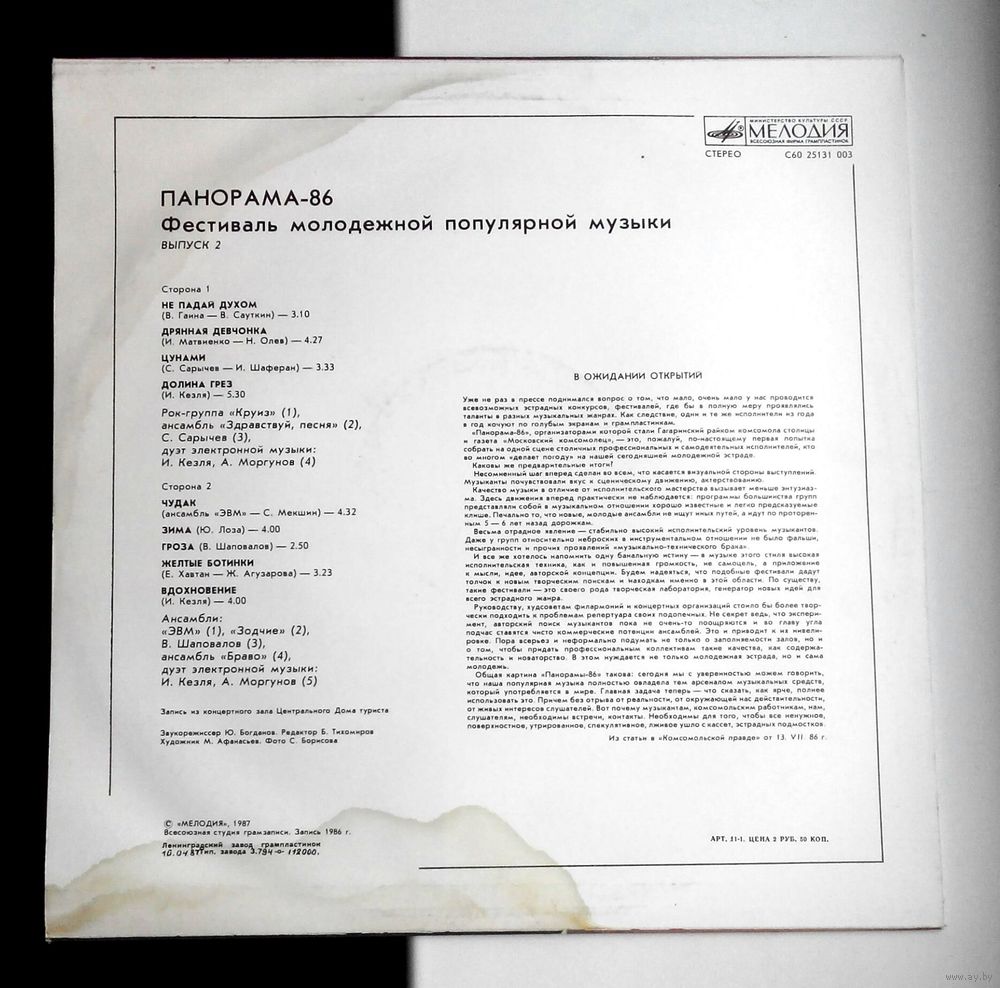 | Пластинка новая, состояние конверта на фото. | |