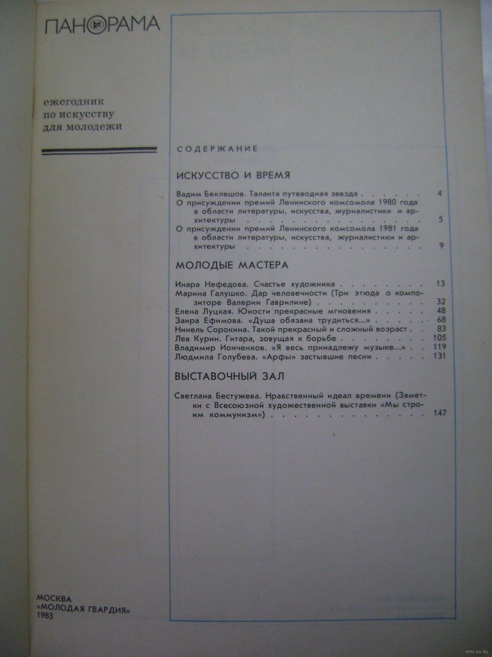 Панорама. Ежегодник по искусству для молодежи. Москва "Молодая гвардия" 1983 год.