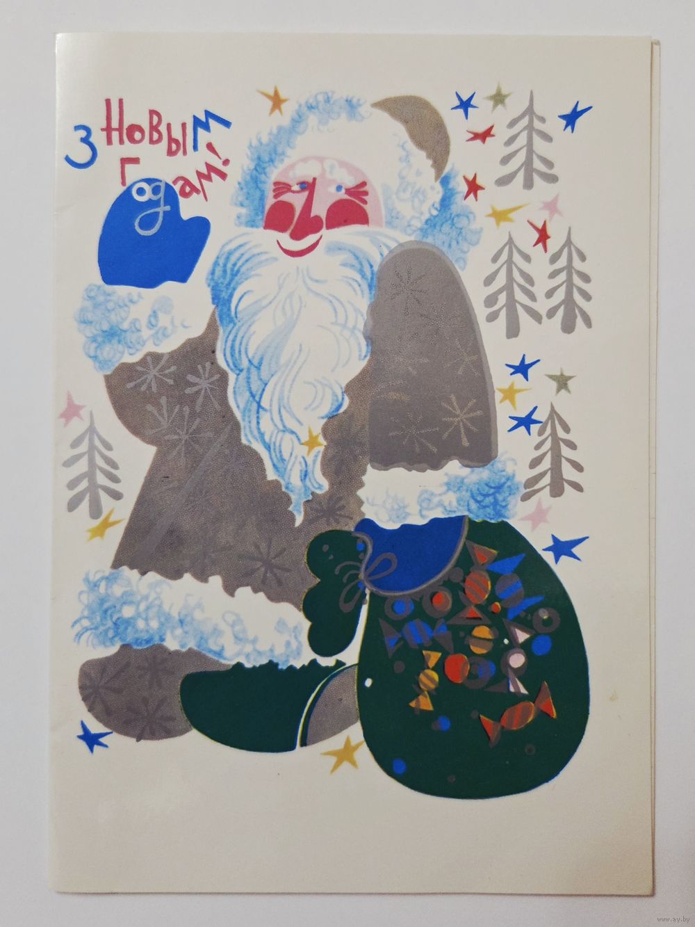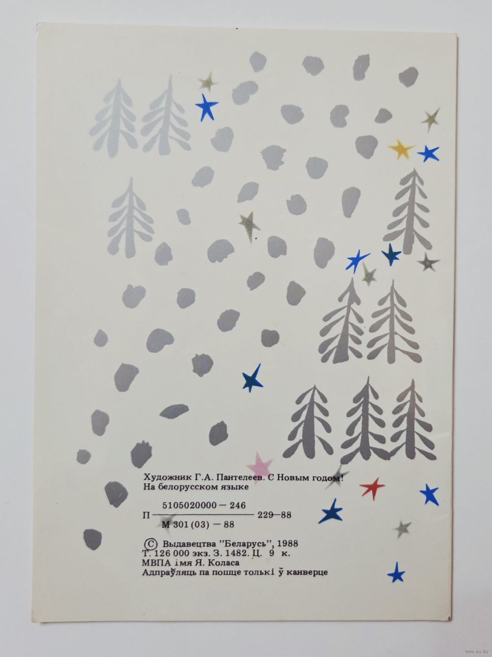 Пантелеев С Новым годом 1988 малотиражная чистая открытка СССР (БССР, Беларусь)