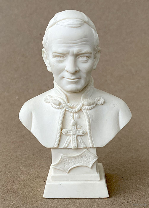 Настольный бюст Папы Римского Иоанна Павла II. Искусственный камень, высота 11 см. Состояние отличное.