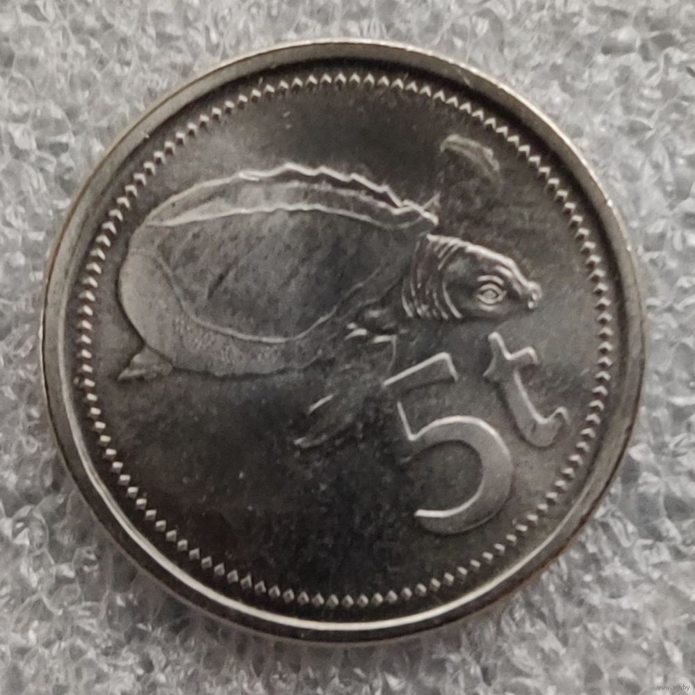 Номер KM # 3a Страна Папуа - Новая Гвинея Период Независимое Государство Папуа - Новая Гвинея (1975 - 2025) Правитель Елизавета II Валюта Кина Папуа-Новой Гвинеи Вид чекана Регулярный чекан Номинал 5 тойя Год 2002 - 2020 Гурт Рубчатый Форма Круг Отношение авс/рев Медальное (0°) Материал Сталь с никелевым покрытием Вес (g) 2,55 Диаметр (mm) 19,53 Толщина (mm) 1,4