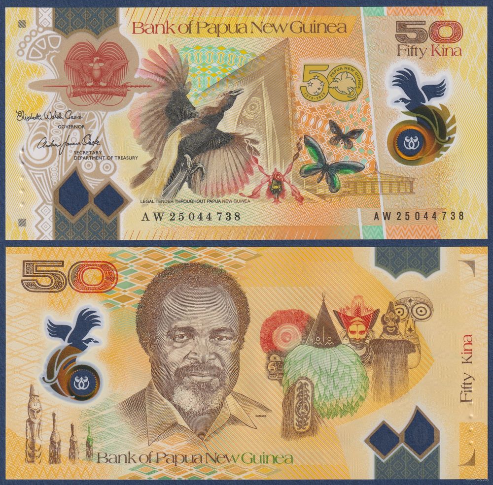 Папуа-Новая Гвинея, 50 кина 2025 г., P-W58 (AW, полимер, памятная - 50-летие Независимости), UNC